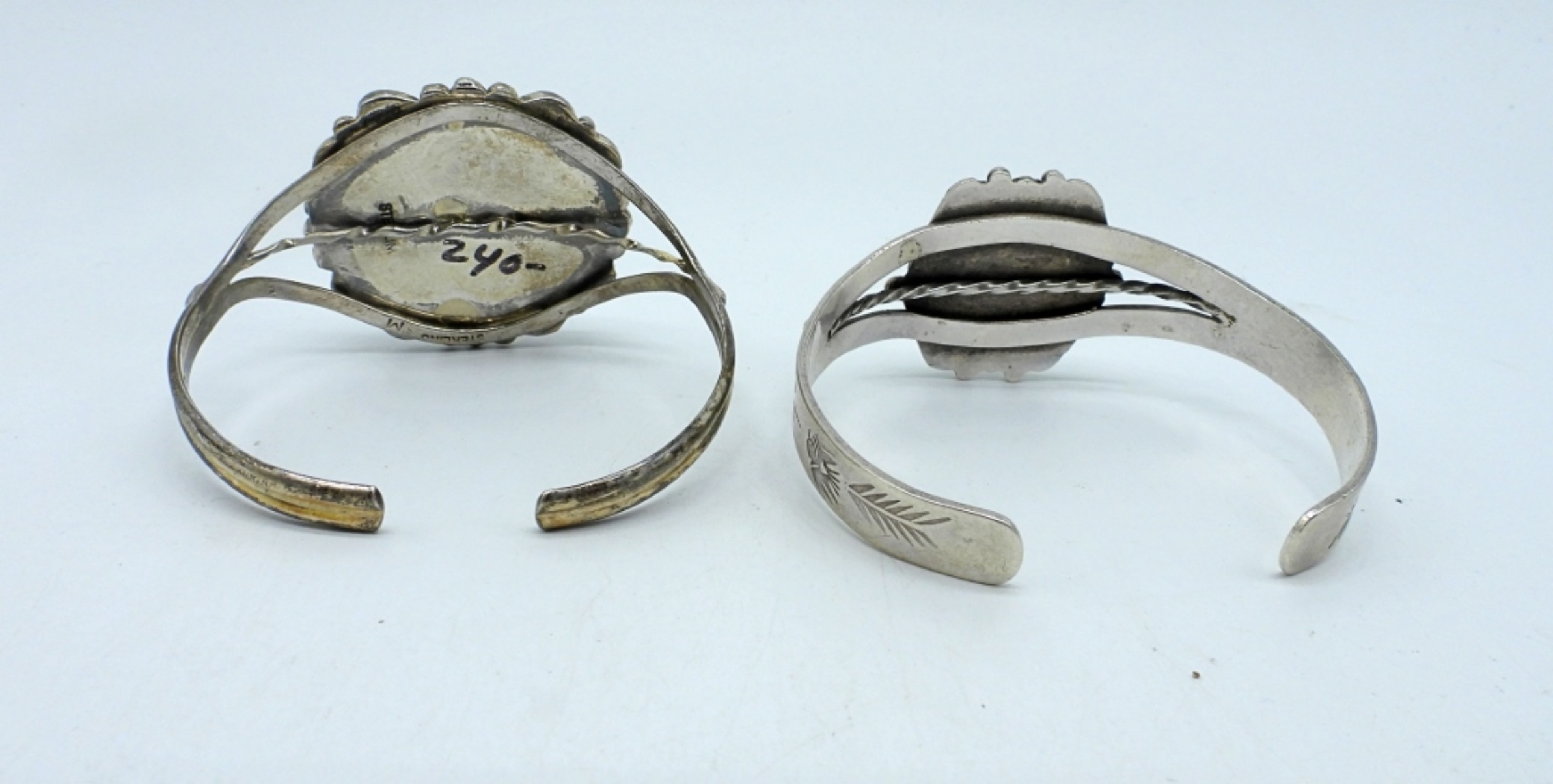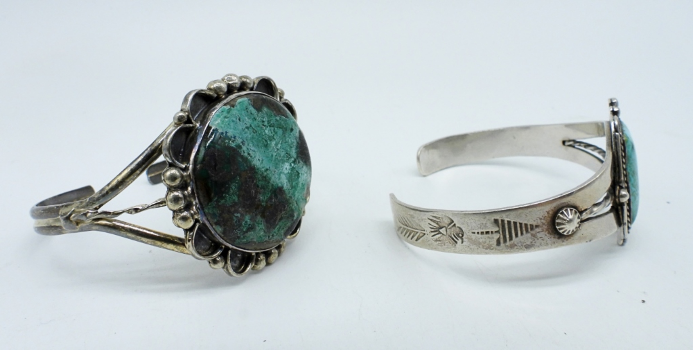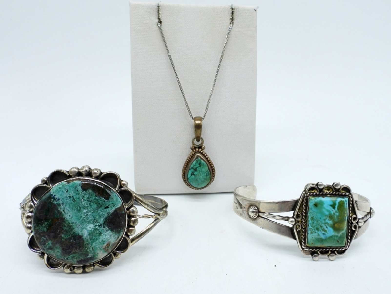 VINTAGE STERLING TURQUOISE CUFF BRACELETS. NECKLACE 20″. (34.1 DWT)