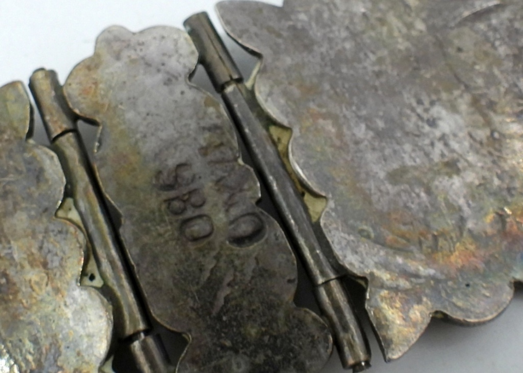 VINTAGE STERLING TAXCO BRACELET, STAMPED “TAXCO 980”. HIGHER SILVER CONTENT THAN STERLING! 6.5″ LONG. (54 DWT)