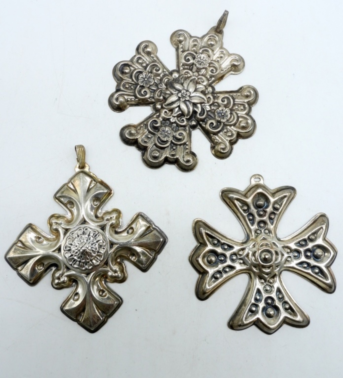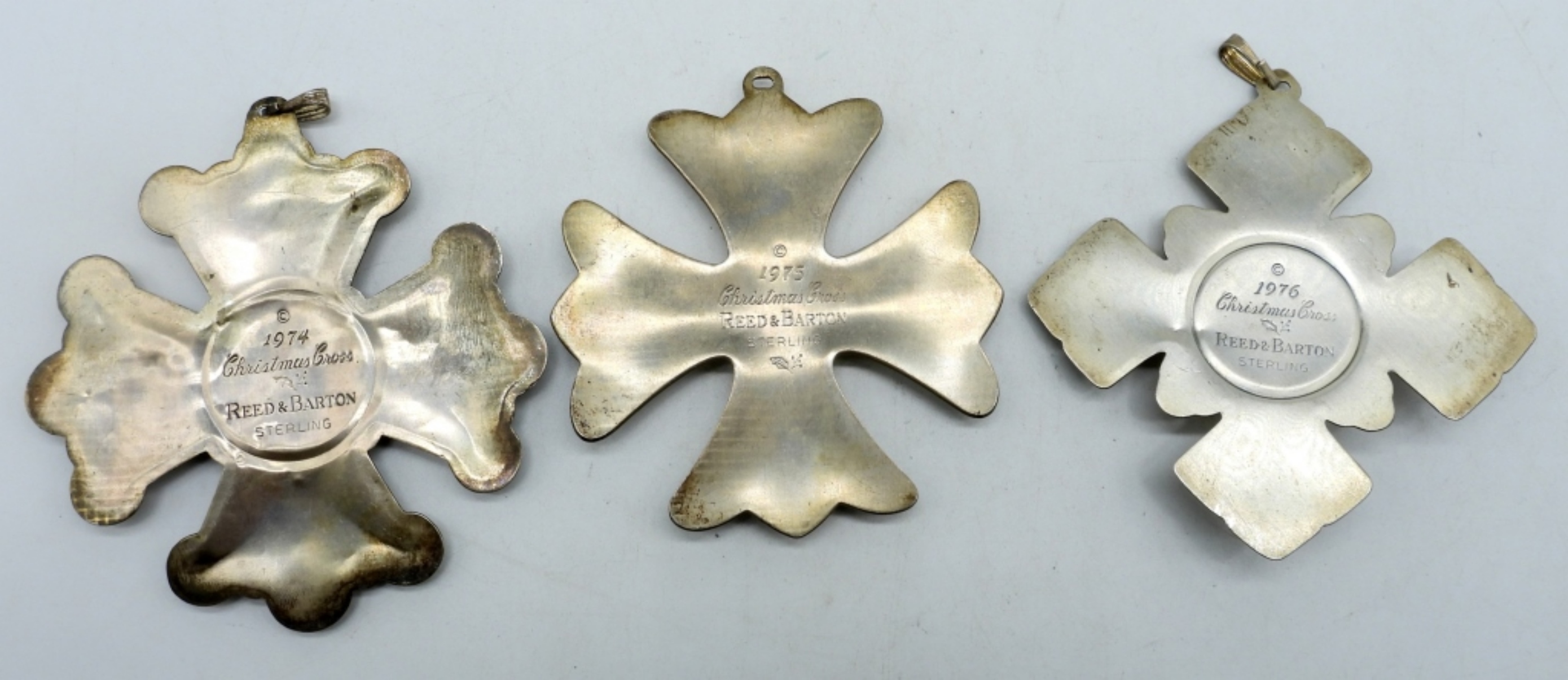 THREE STERLING REED & BARTON CHRISTMAS CROSS ORNAMENTS. 1974, 1975, 1976. (33.1 DWT)