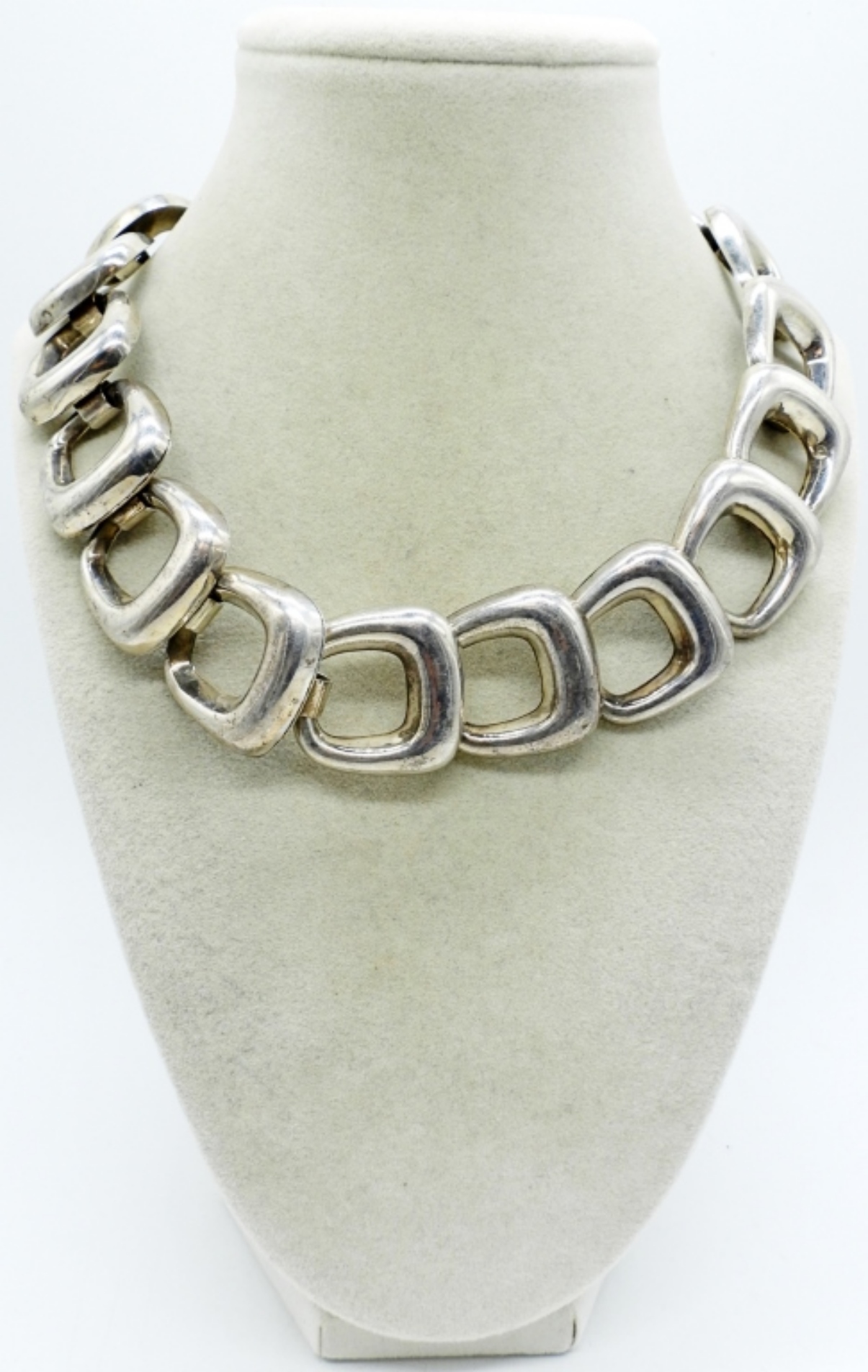 VINTAGE MEXICO STERLING TAXCO 18″ CHUNKY NECKLACE. MARKED “TL-02 MEXICO 925”. (89.9 DWT)