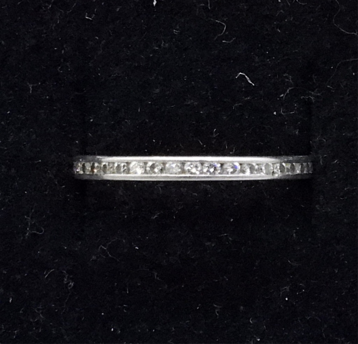 PLATINUM INFINITY DIAMOND BAND. RING SIZE 5. (1.3 DWT W/ DIAMONDS)