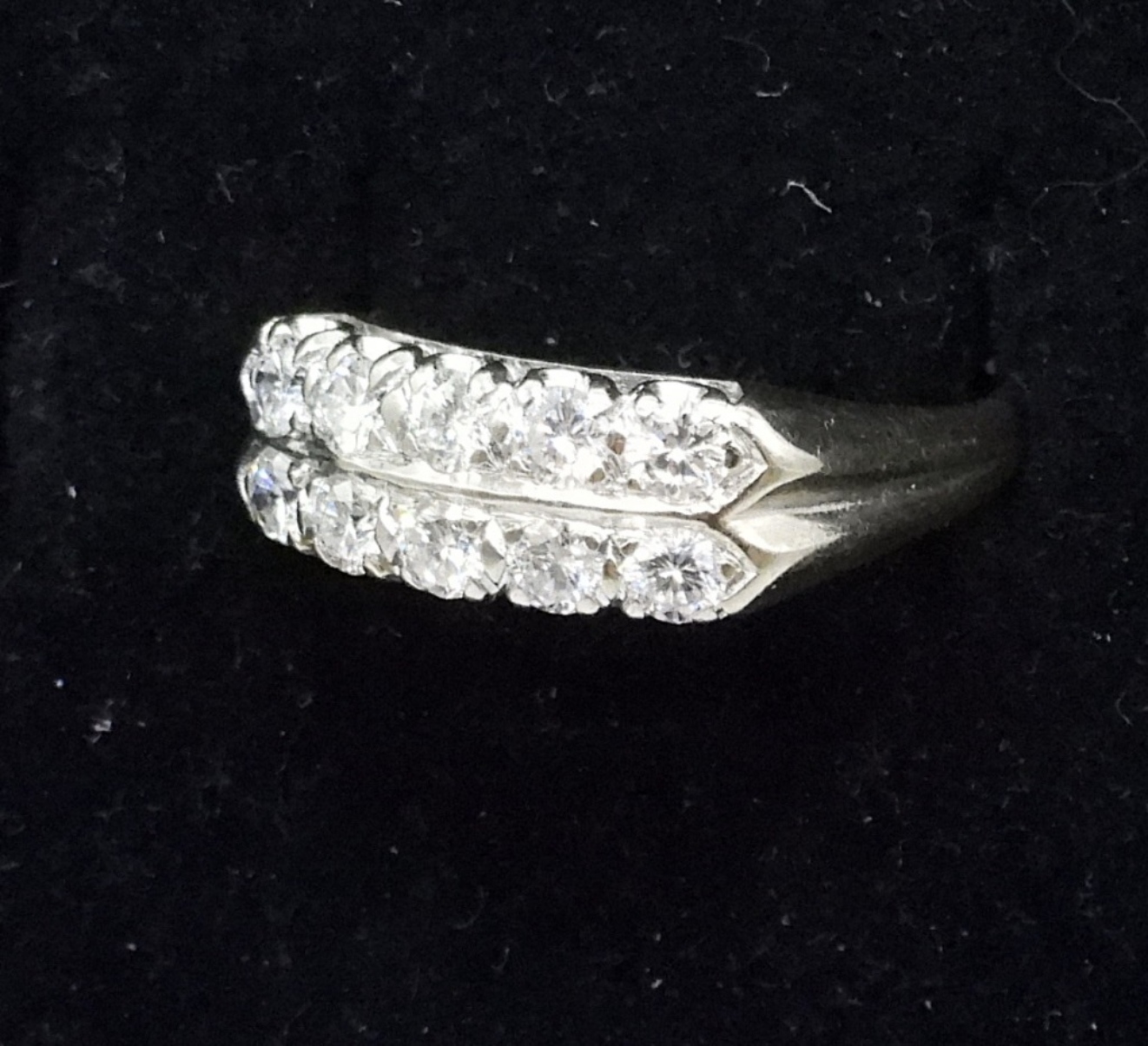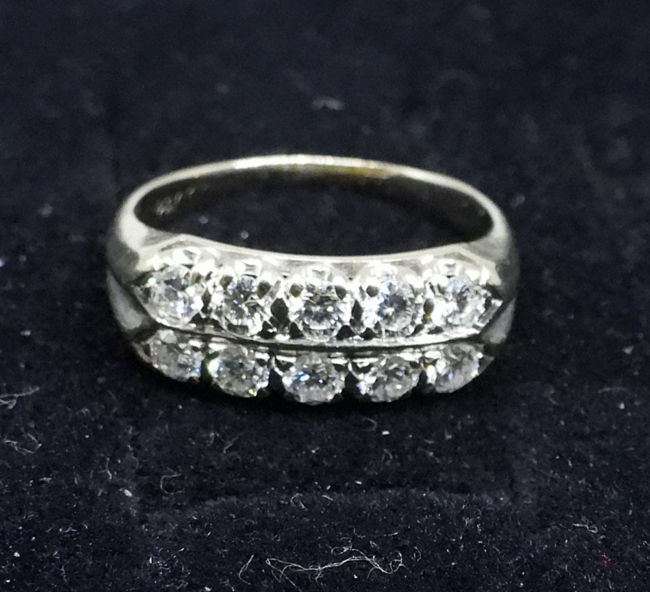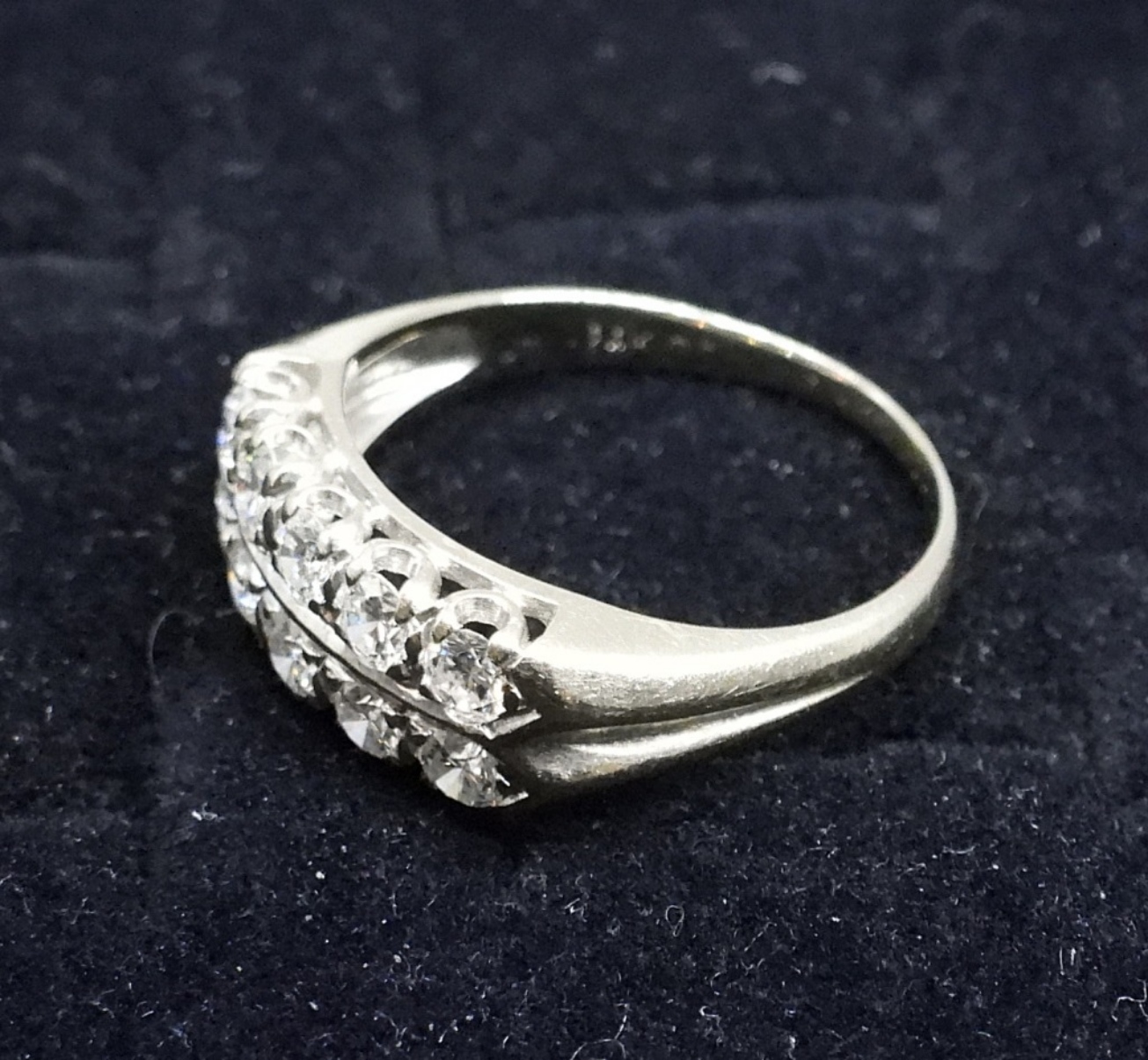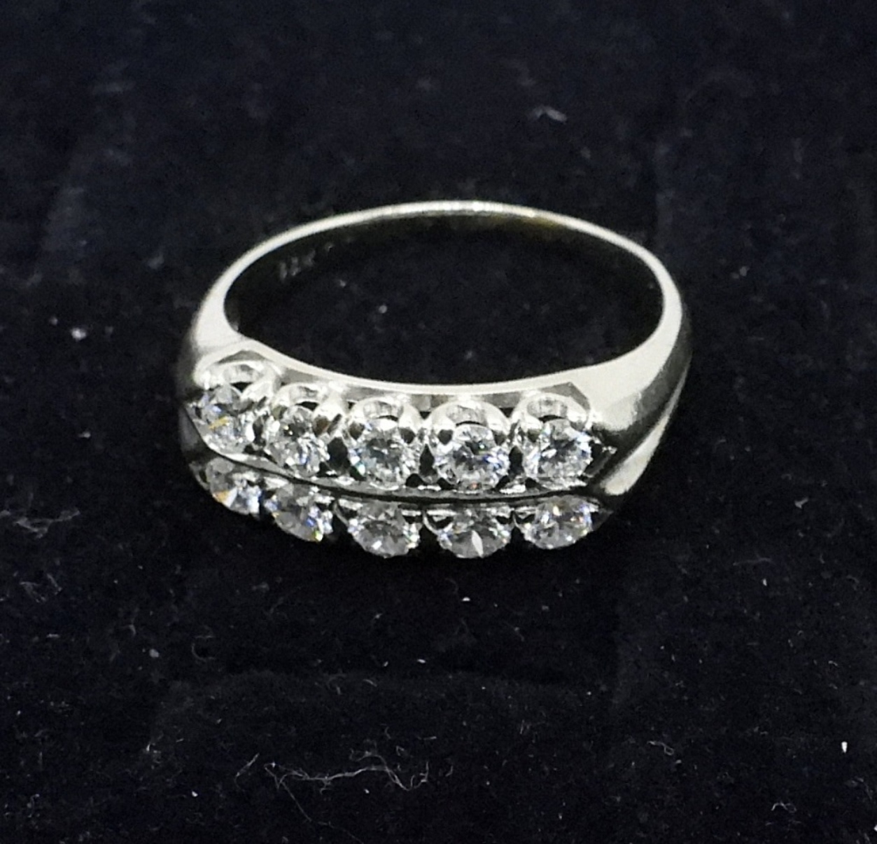 14K WHITE GOLD RING WITH 10 ROUND DIAMONDS (1CT TW). (2 DWT TOTAL)
