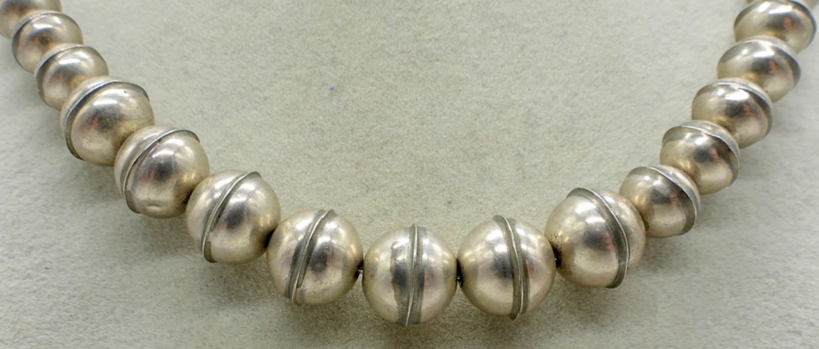 VINTAGE STERLING BEADED NECKLACE. 23″ LONG. (18 DWT)