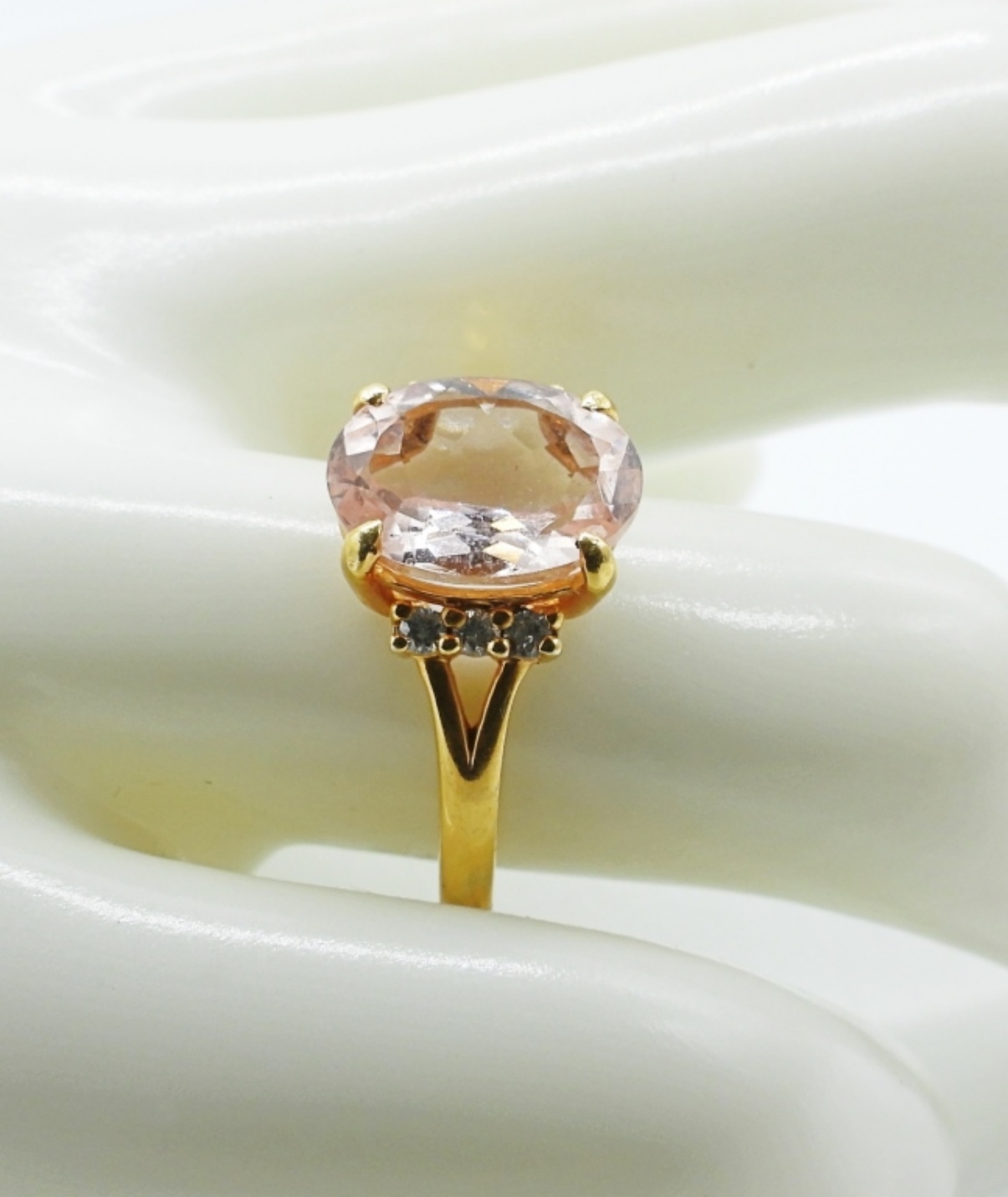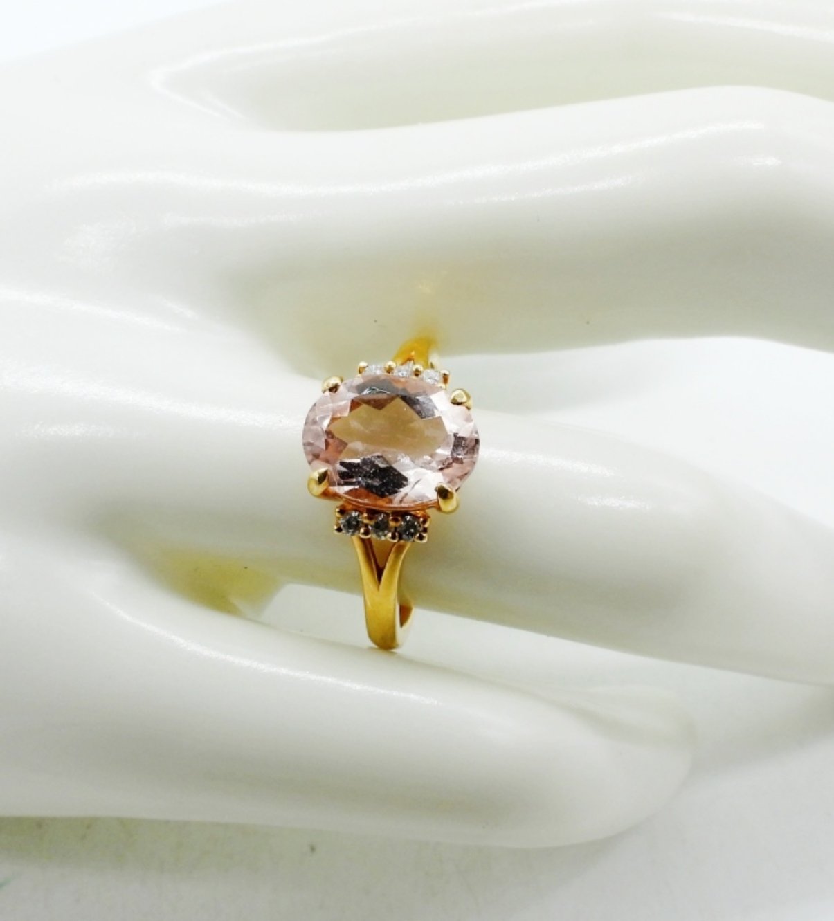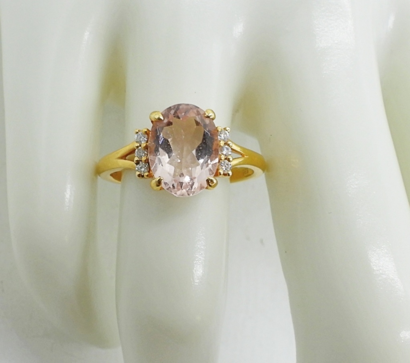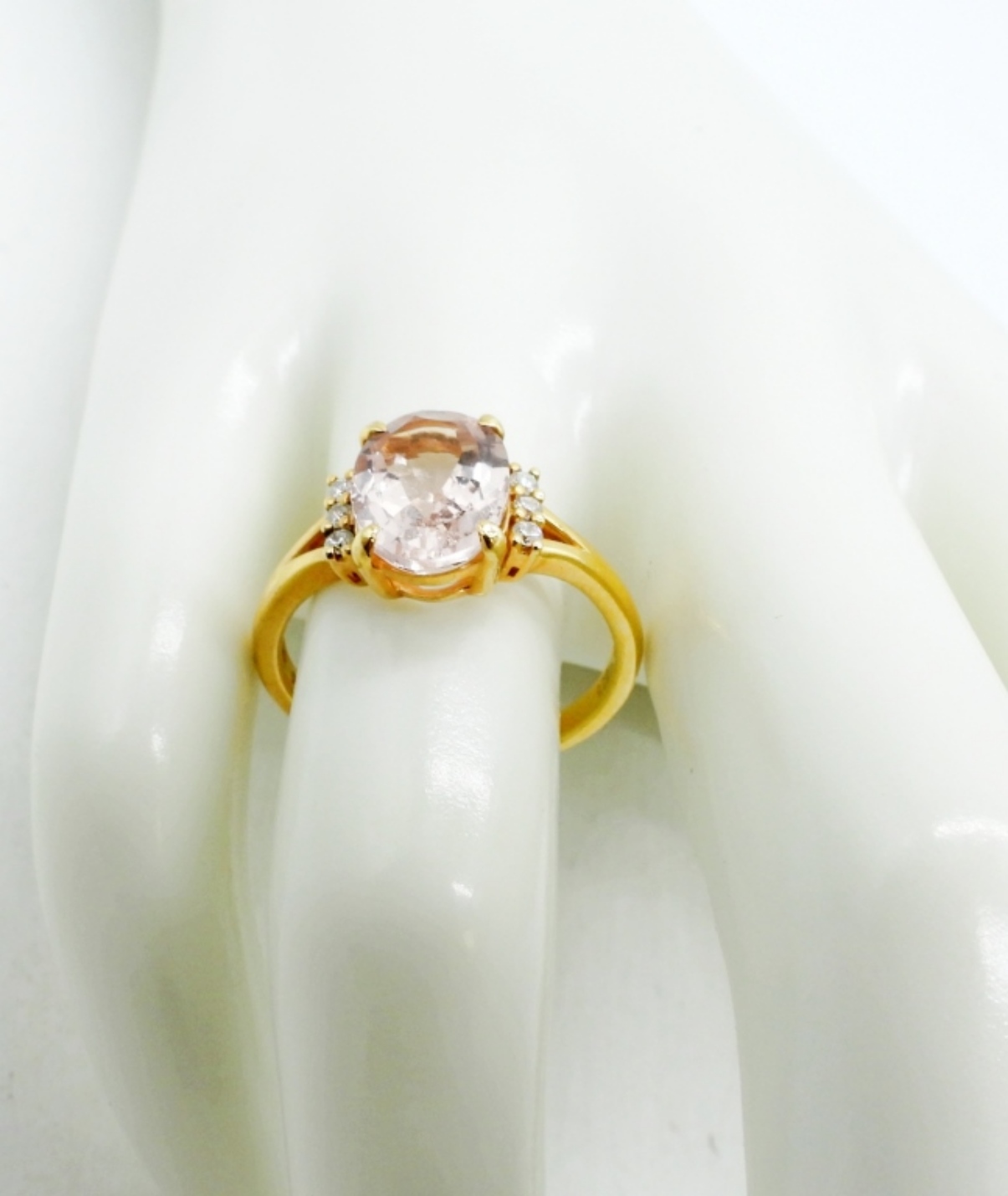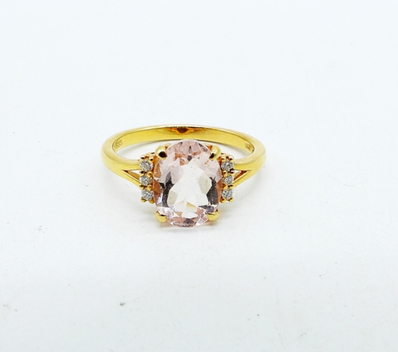 GORGEOUS 14K YELLOW GOLD MORGANITE & DIAMOND RING SIZE 7.5 (1.9 DWT W/ STONE)