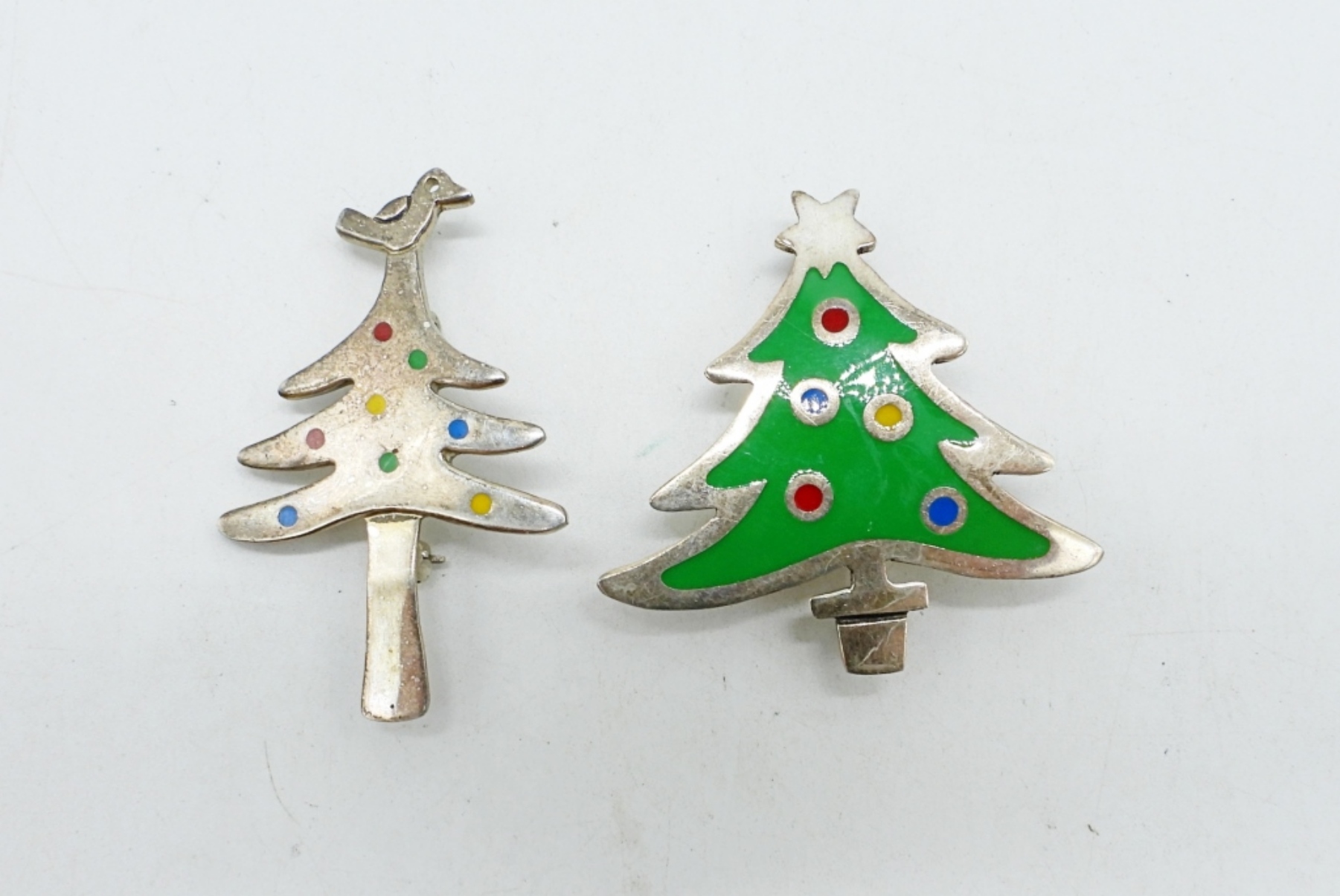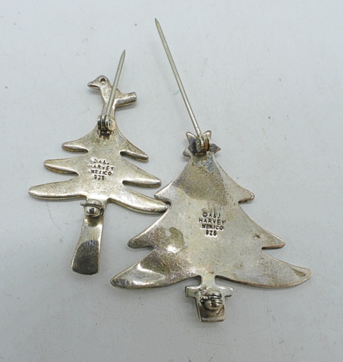 A & J HARVEY, MEXICO STERLING, CHRISTMAS TREE PINS. 2″ LONG. (8 DWT)