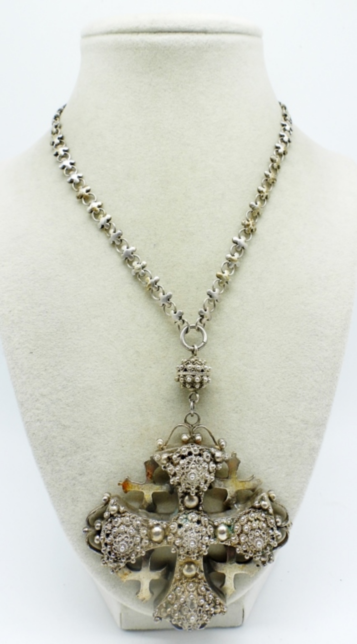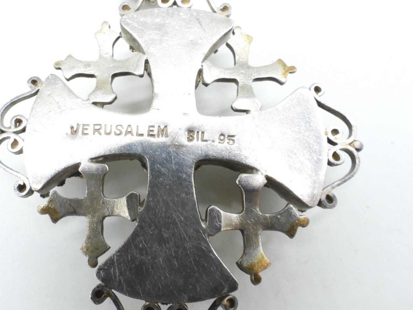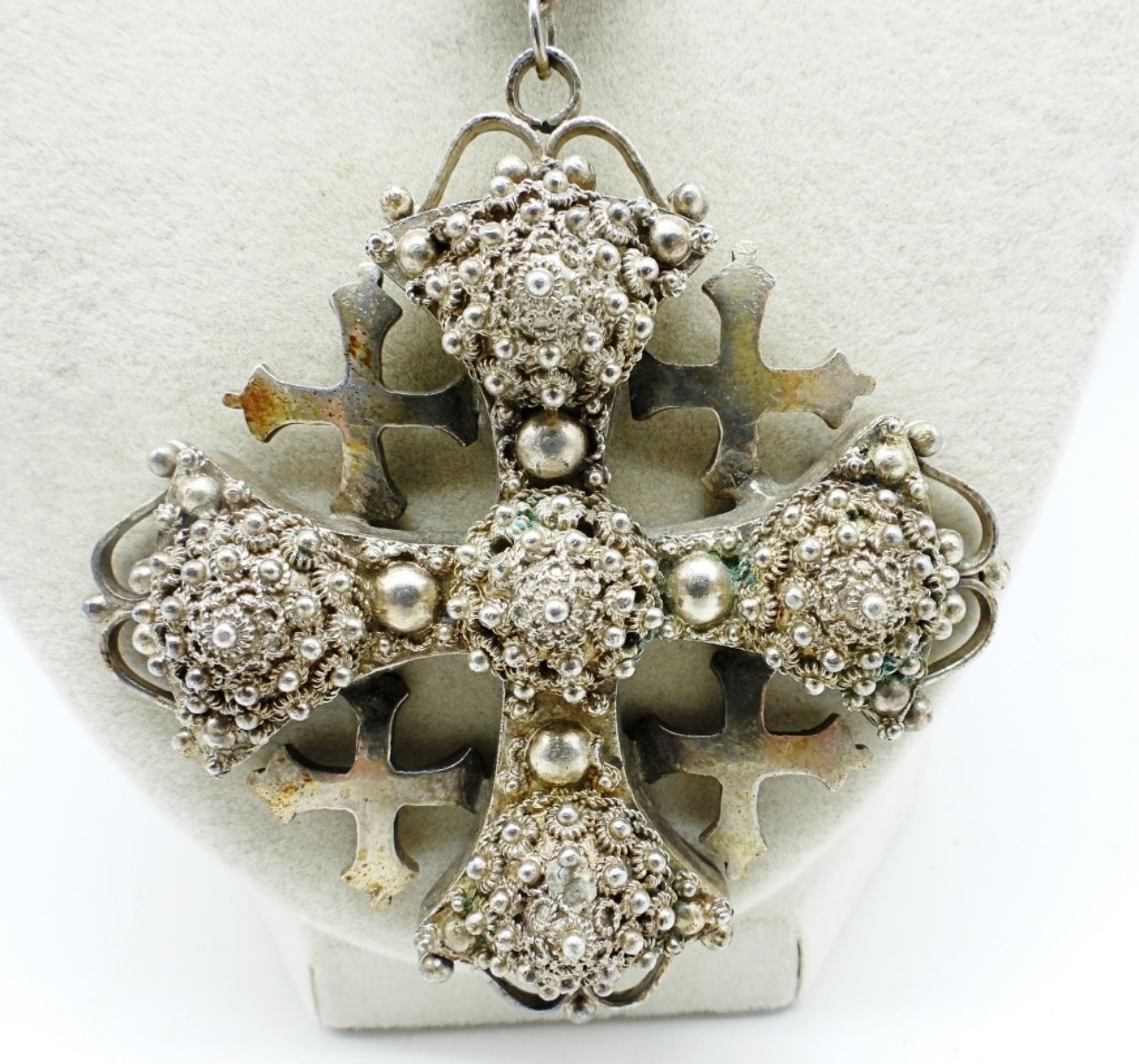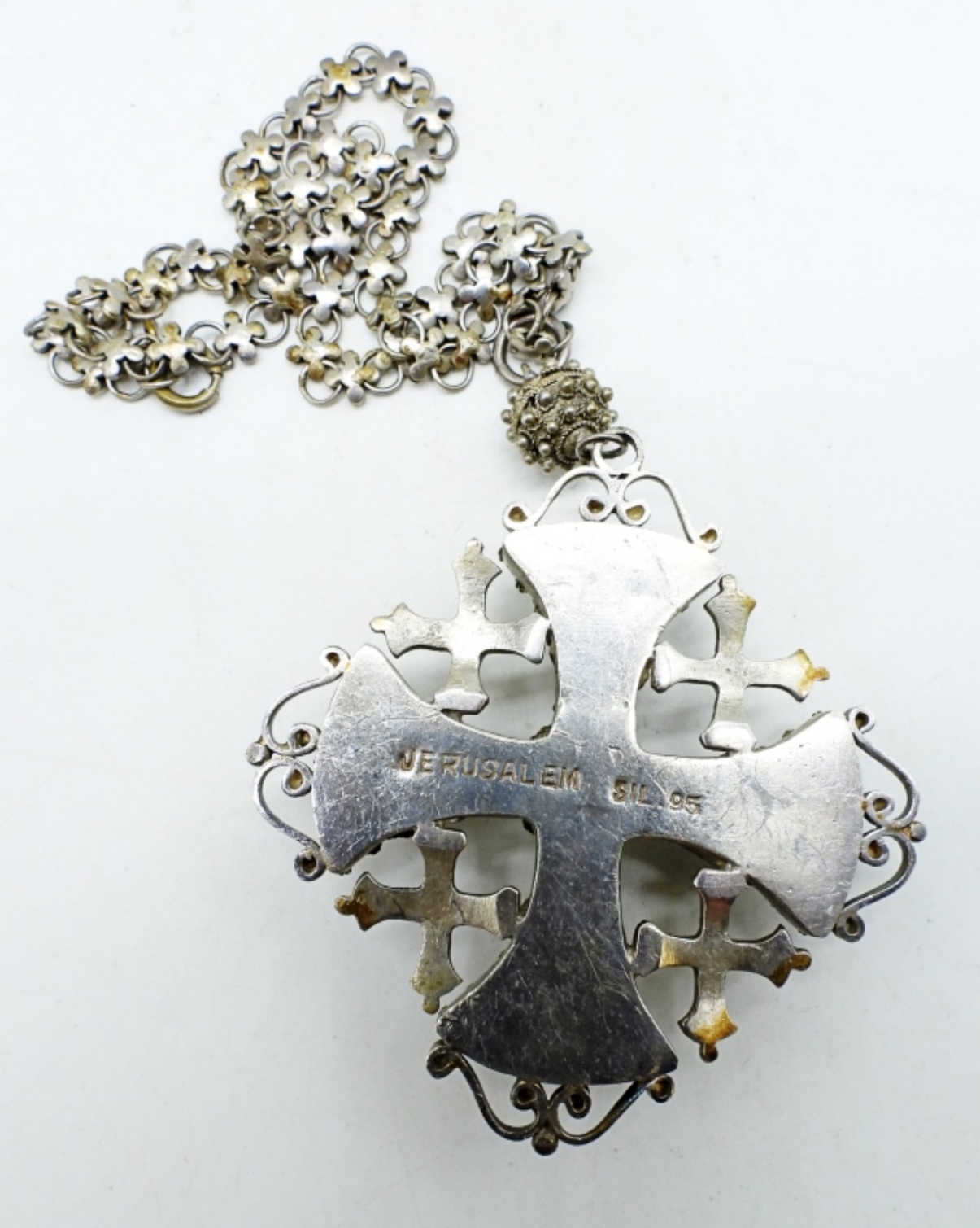 JERUSALEM SILVER 950 CROSS PENDANT, 3″ ON A 16″ STERLING CHAIN. (42 DWT)