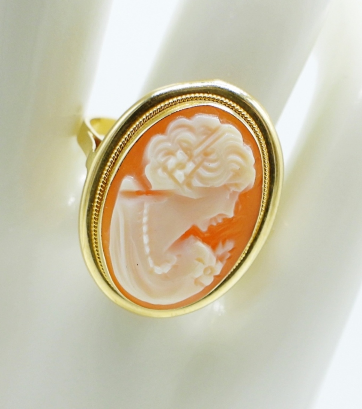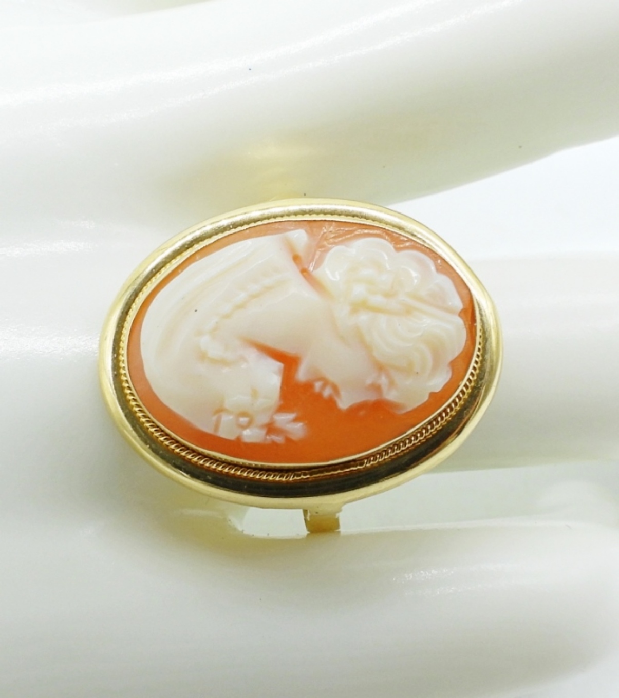 14K YELLOW GOLD VINTAGE CAMEO RING, SIZE 9 (2.4 DWT WITH STONE)