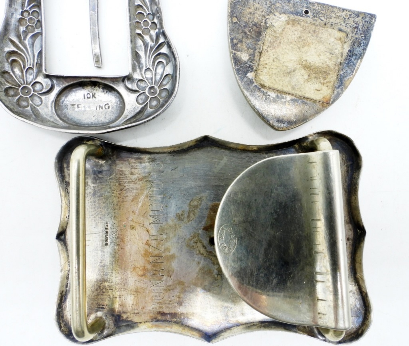 1968 PORTERVILLE JR RODEO, STERLING (STAMPED: BONANZA MOTORS, ON BACK), 3″WIDE x 2″ LONG. NOT PERSONALIZED! STERLING / 10K GOLD BELT BUCKLE AND TIP, 2″. (52.4 DWT)