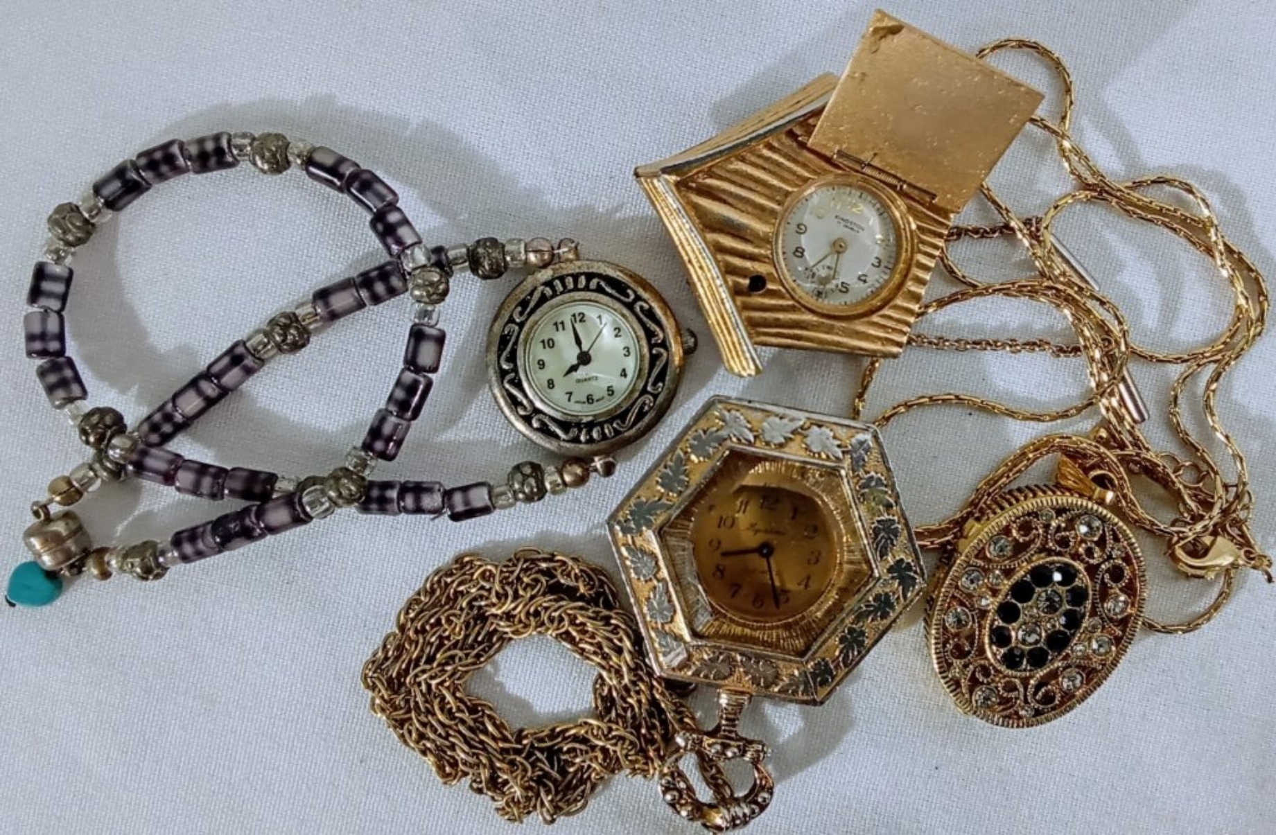 WATCHES ARE NOT VERIFIED, AUTHENTICATED, OR TESTED IN RUNNING CONDITION UNLESS SPECIFIED, INCLUDING KINSTON PIN, MAJETIME, VANITY FAIR LOCKET, & MORE