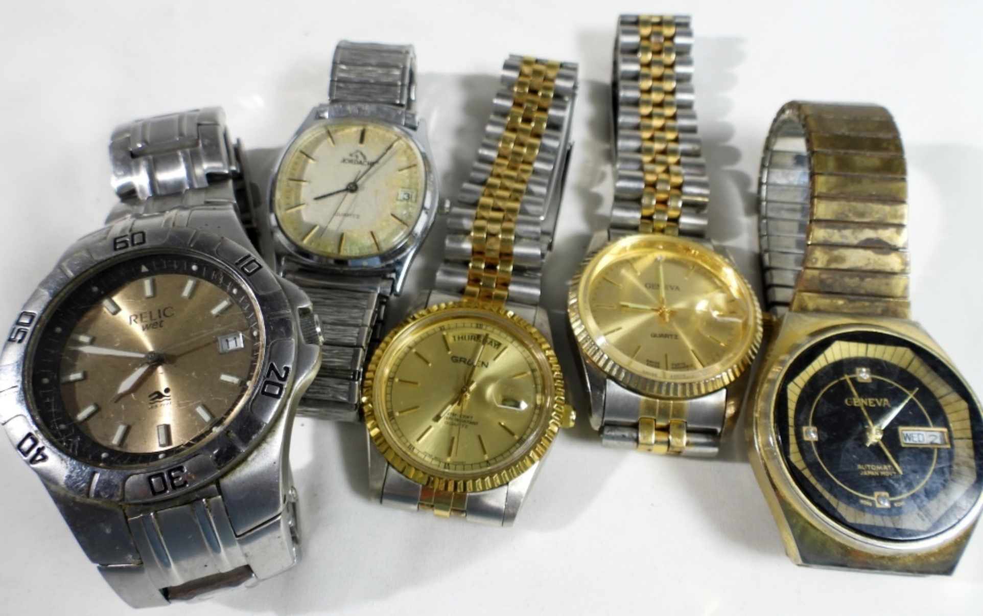 WATCHES ARE NOT VERIFIED, AUTHENTICATED OR TESTED IN RUNNING CONDITION UNLESS SPECIFIED, INCLUDING GENEVA, GRUEN, RELIC, JORDACHE