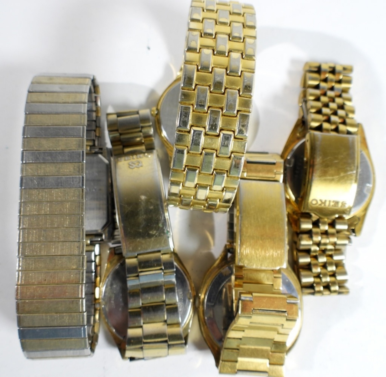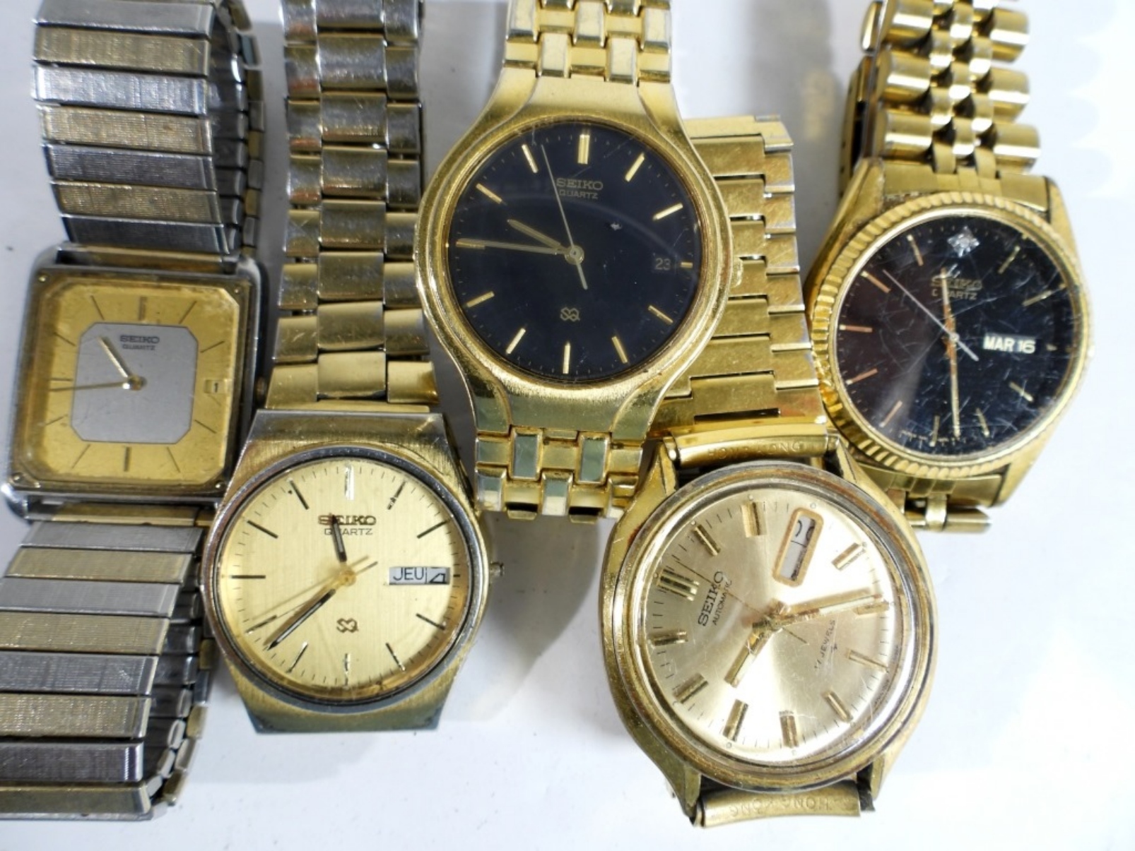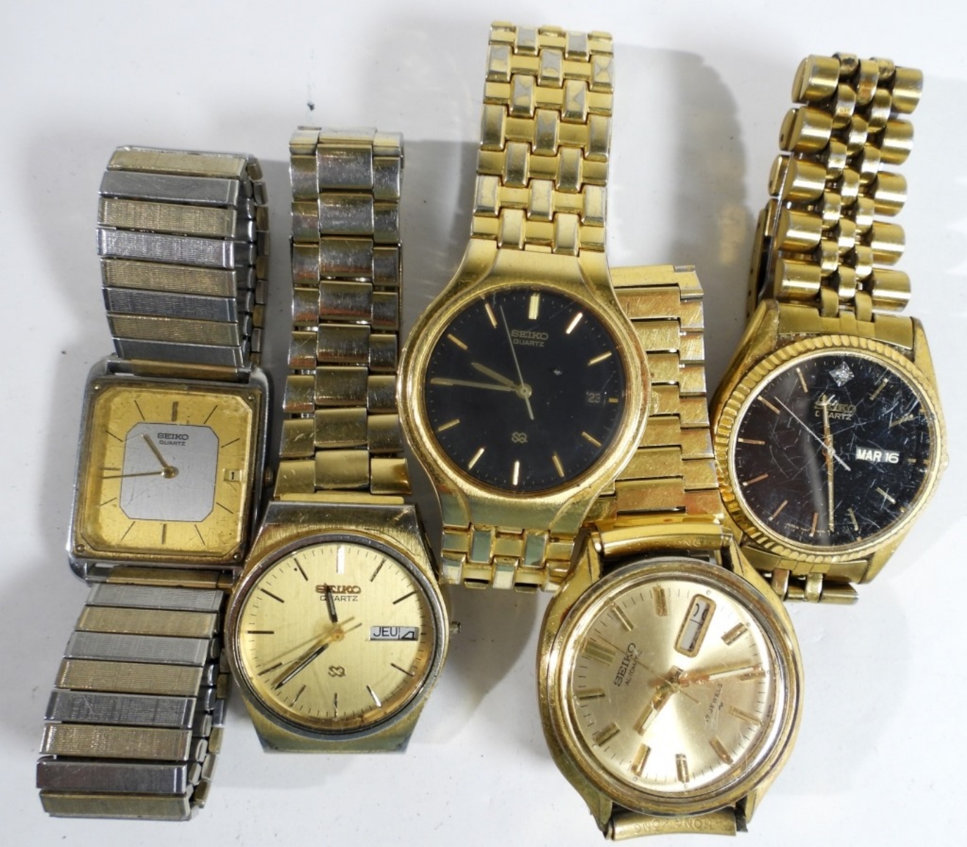 WATCHES ARE NOT VERIFIED, AUTHENTICATED, OR TESTED, IN RUNNING CONDITION, UNLESS SPECIFIED, INCLUDING 5 SEIKO GOLD TONE DAY/DATE WATCHES