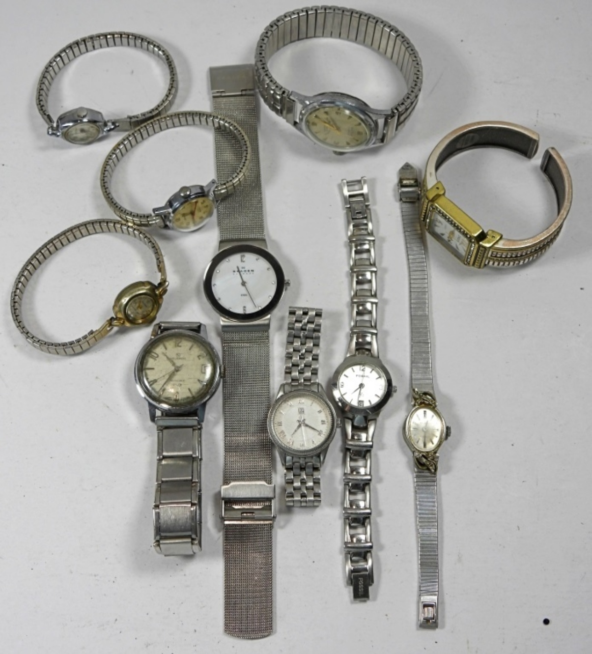 10 various ladies watches from different brands, not tested as to working or not – most will need battery replacements – some for parts or repairs – some may work