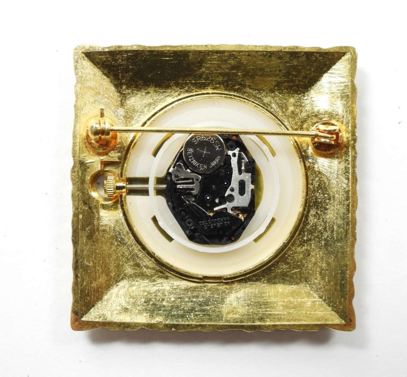 Gold tone ornate watch brooch, untested as to working or not, may need a new battery