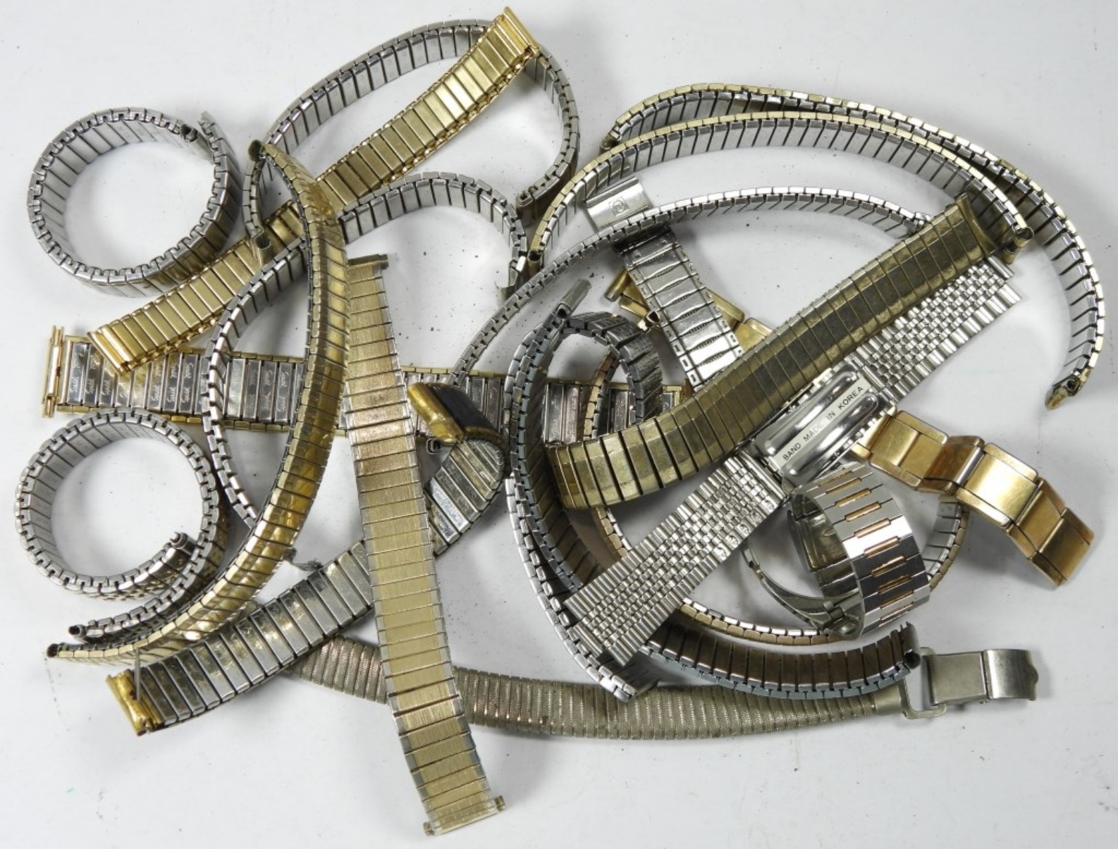 20 GOLD/SILVER TONE BANDS, ALL FOR PARTS AND REPAIR OF OTHER WATCHES