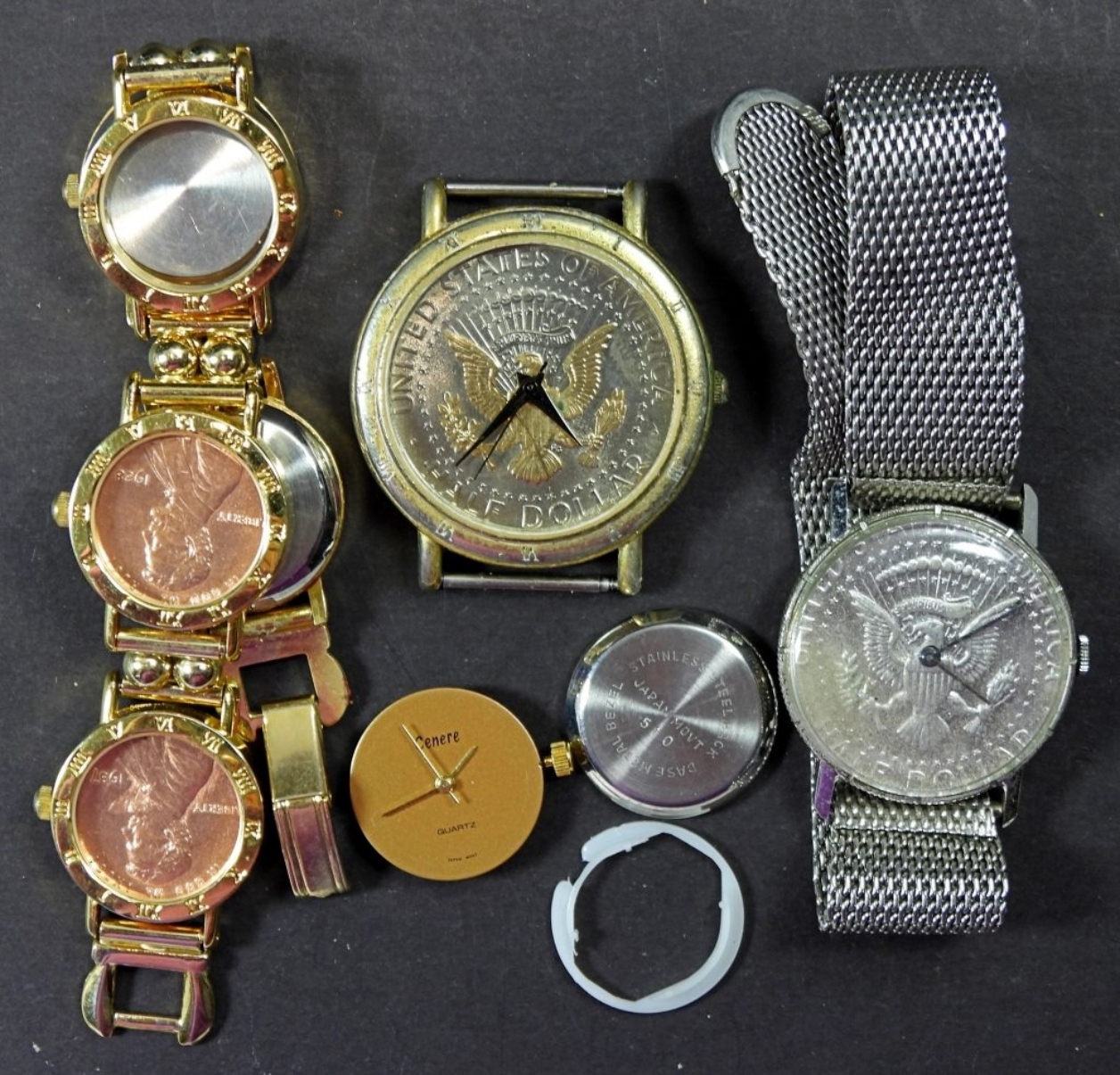 (3) COIN STYLED WATCHES, UNTESTED, WATCH MAY OR MAY NOT WORK, COULD BE USED FOR PARTS OR REPAIR