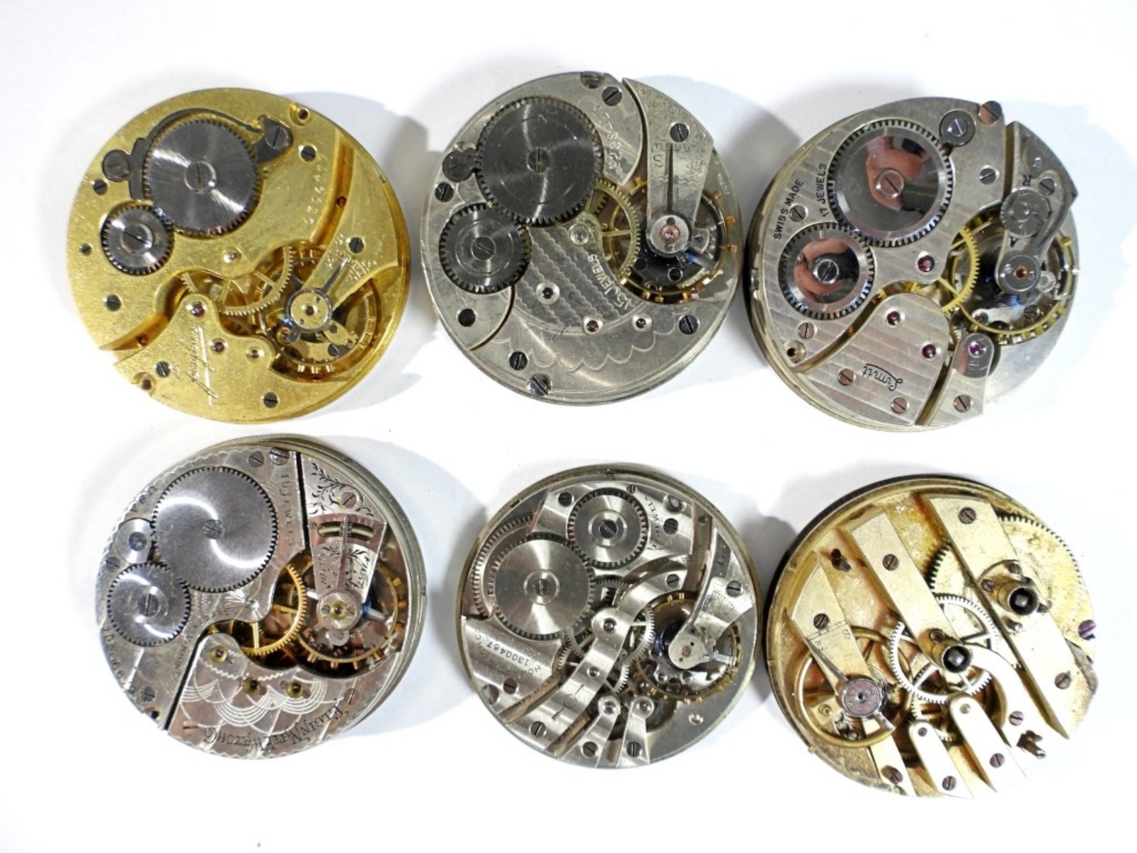 (6) SIZE 16’S WATCH MOVEMENTS FOR PARTS ELGIN, HOWARD, AND MORE