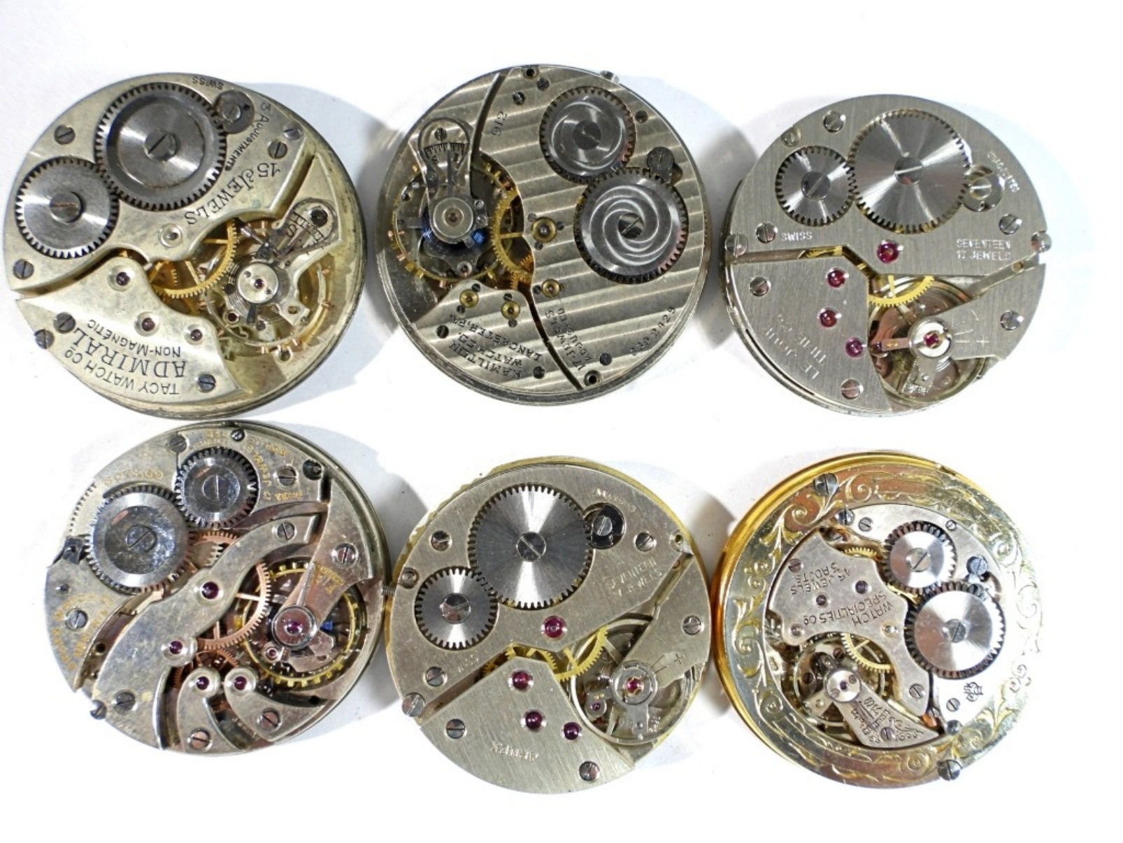 (6) SIZE 8’S WATCHE MOVEMENTS FOR PARTS ARNEX, HAMILTION, GRUEN AND MORE