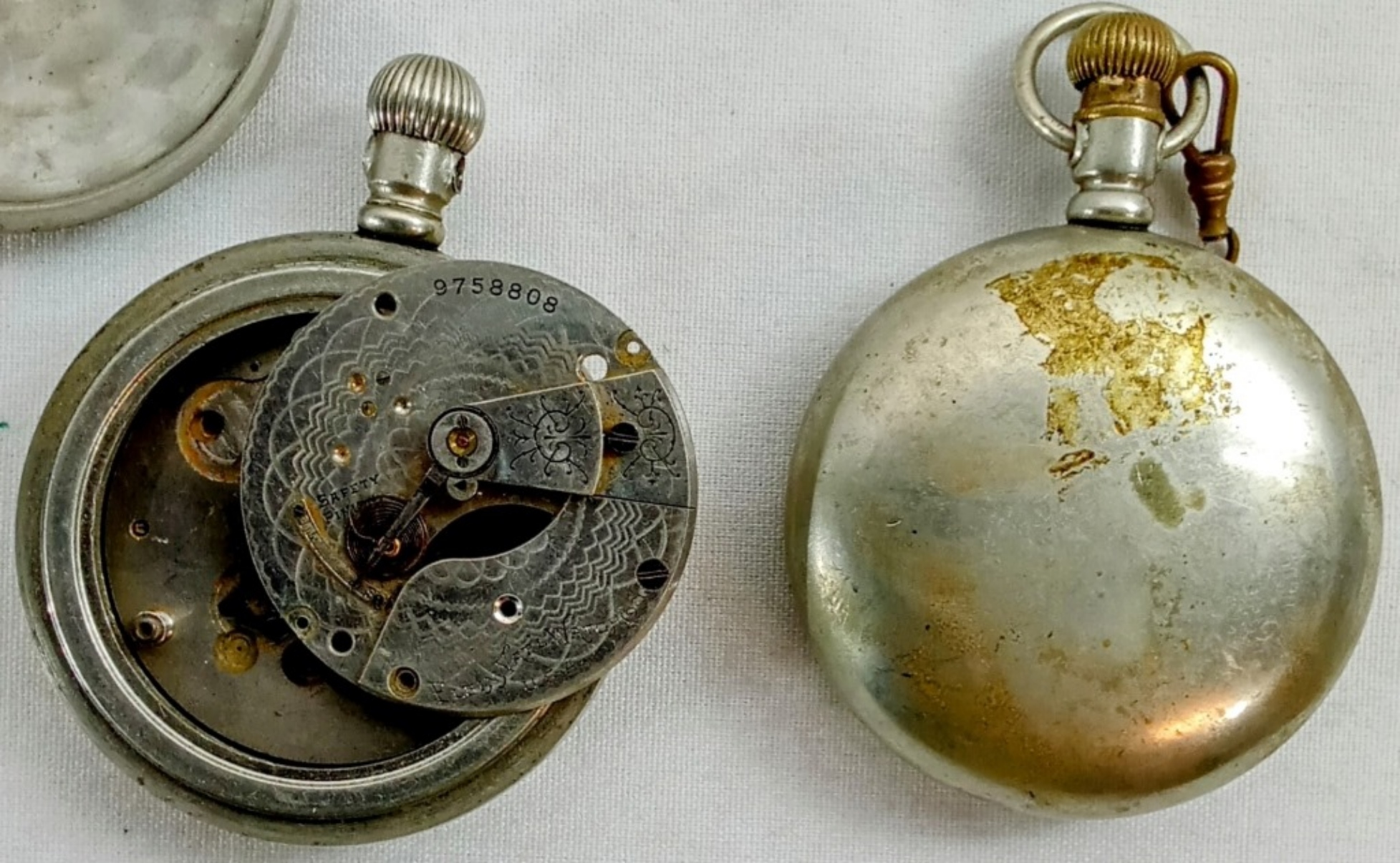 ILLINOIS SERIAL #2651394 missing face & ELGIN SERIAL #9758808 missing movement