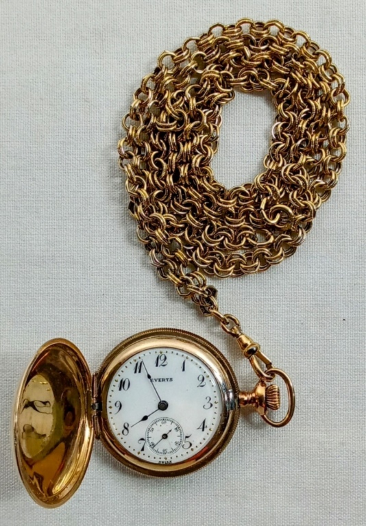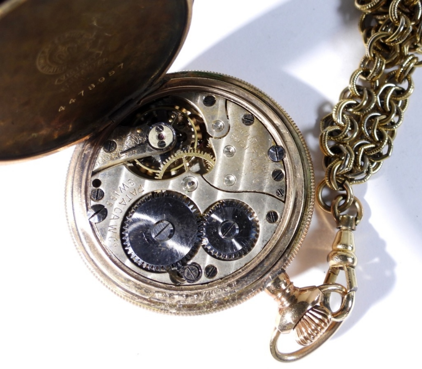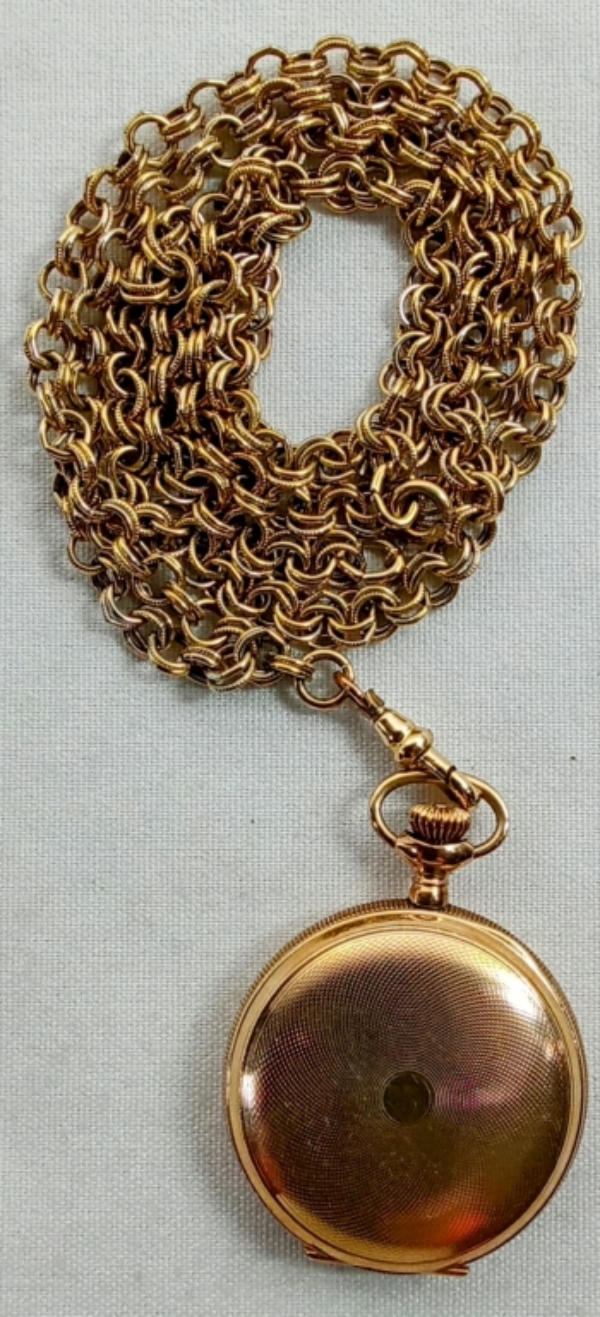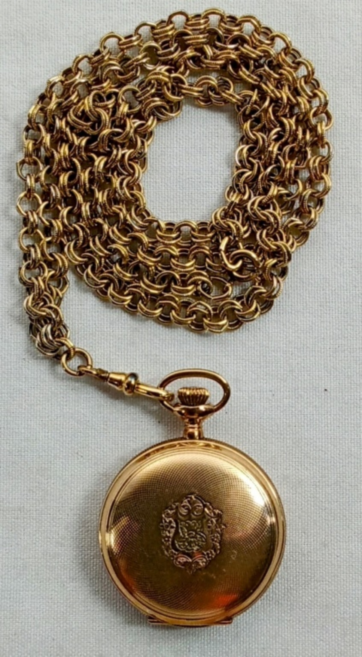 HUNTING CASE with CHAIN – RUNNING CONDITION / NEEDS SERVICED – ENGRAVED ON DUST COVER – PATACA W CO.SWISS