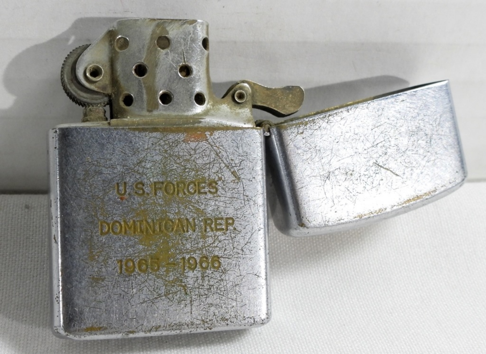 FIRED VINTAGE VULCAN MILITARY LIGHTER “HEADS UP” U.S. FORCES DOMINICAN REP. 1965-1967