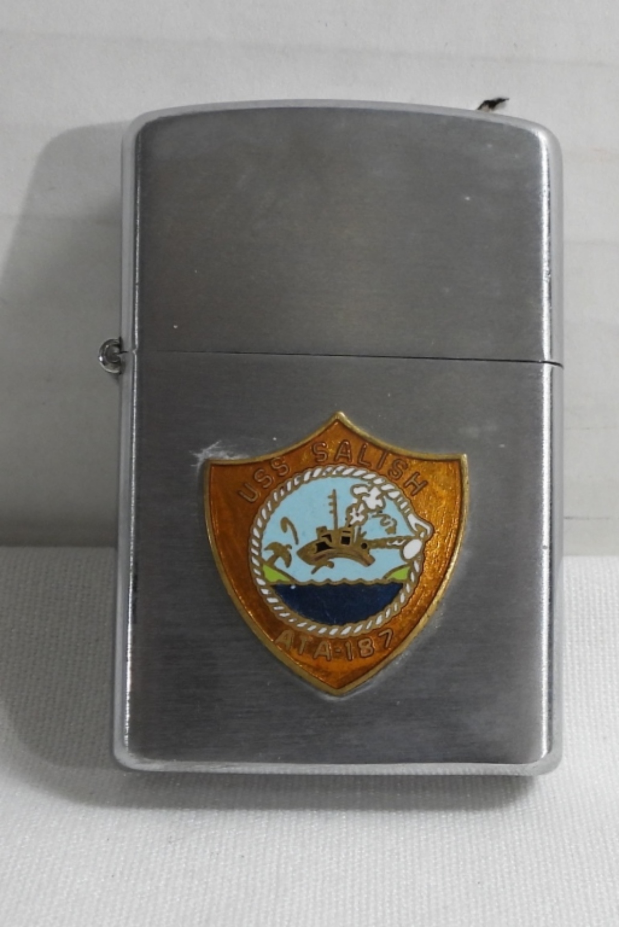 UNFIRED VINTAGE COMMEMORATIVE ENAMEL MEDALLION FEATURING THE USS SLAISH (ATA 187)