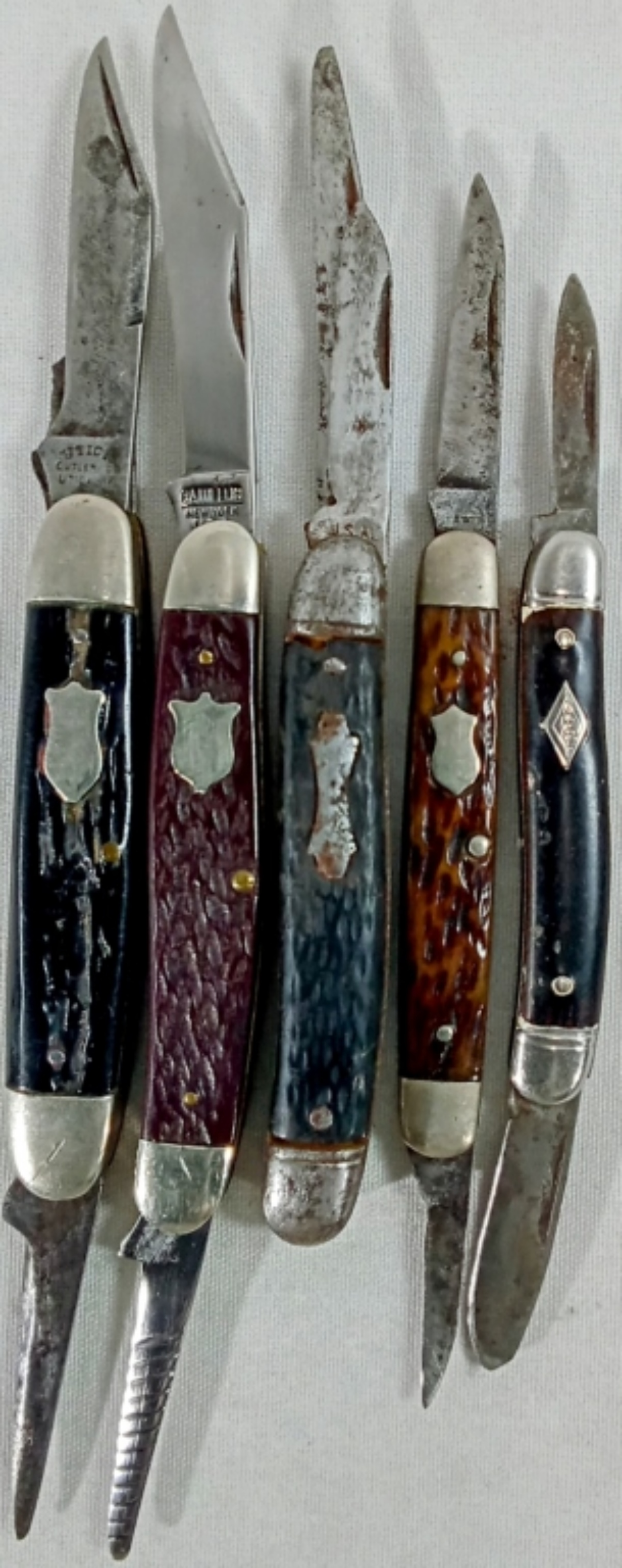 CAMILLUS, UTICA, U.S.A., REMINTON & IMPERIAL – PRE-OWNED USED LOT (CAMILLUS NEAR NEW) (UTICA has BROKEN BLADE)