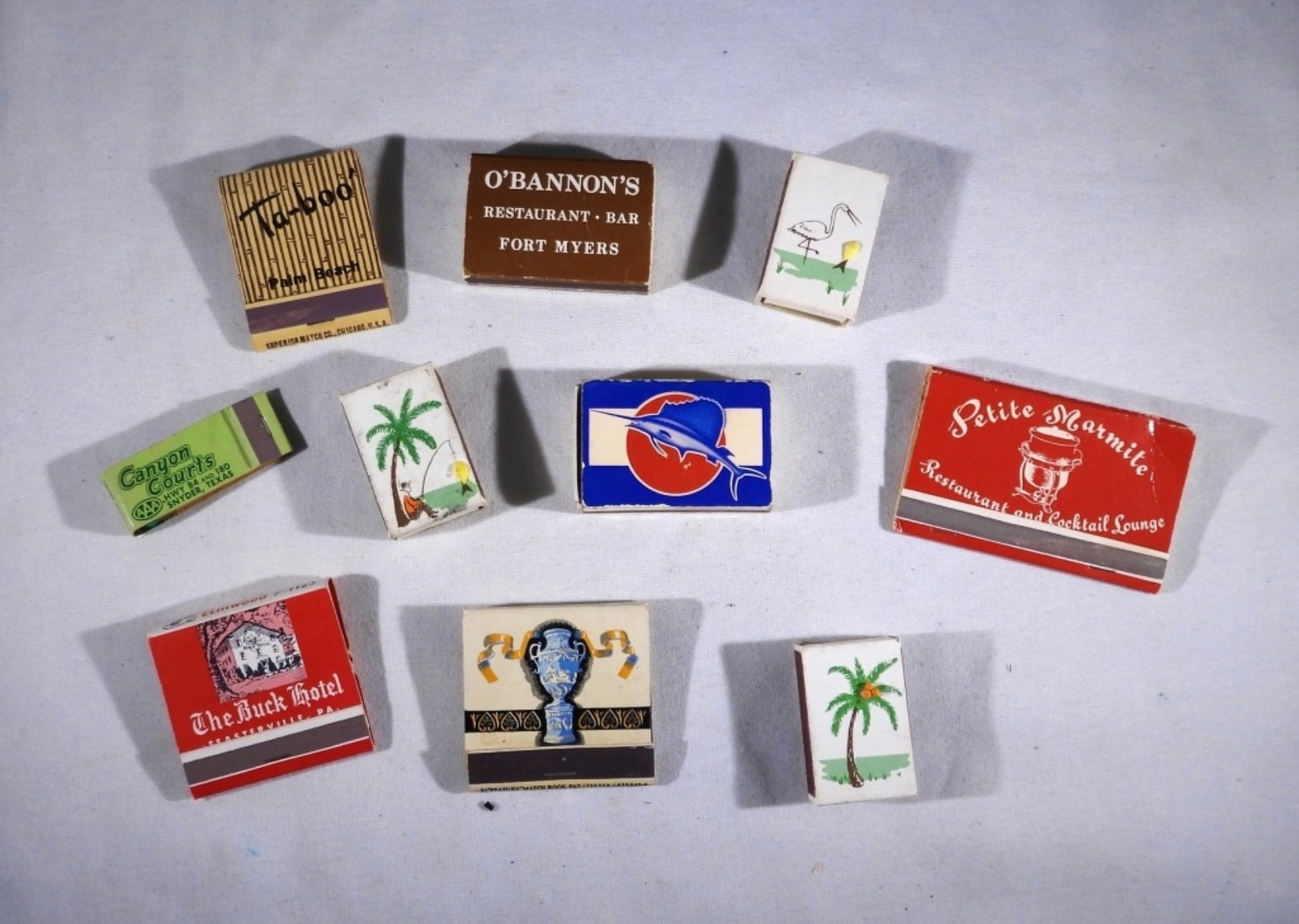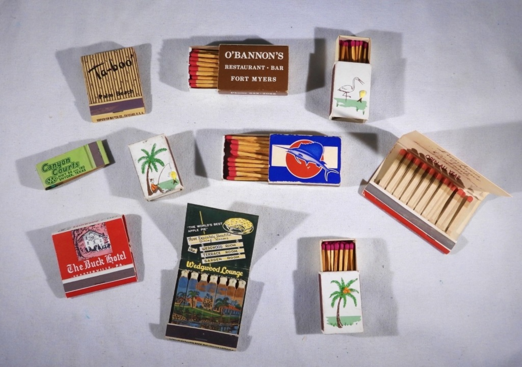 TEN VINTAGE MATCHBOOKS, MOSTLY FROM FLORIDA AND TEXAS. A FEW OTHERS.