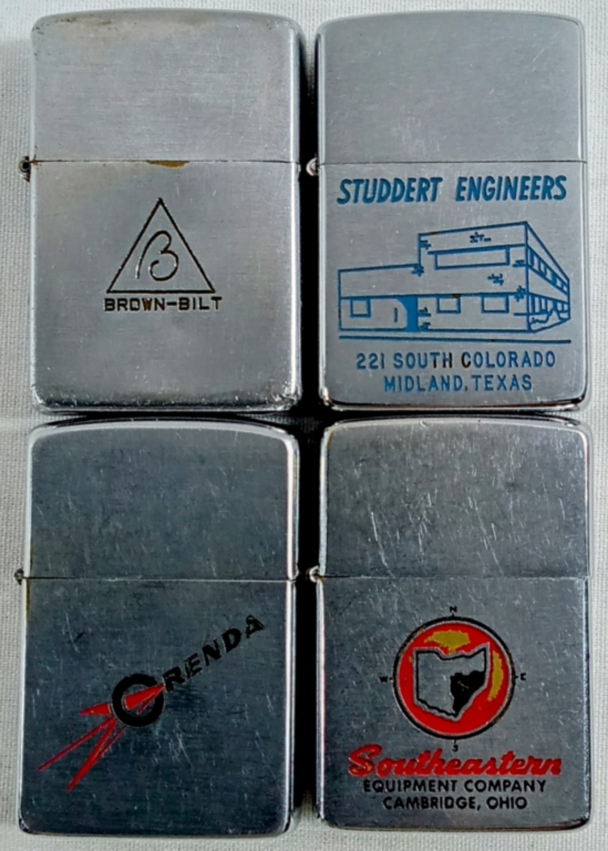 3 FIRED AND 1 UNFIRED, 1- UNFIRED BROWN-BILT PAT PENDING 2032695 INSERT DOES NOT MATCH, 1- ORENDA 1950 NIAGARA FALLS, ONTARIO INSERT MATCHES, 1- STUDDERT ENGINEERS PAT PENDING 2517191 INSERTS MATCH, 1- SOUTHEASTERN
