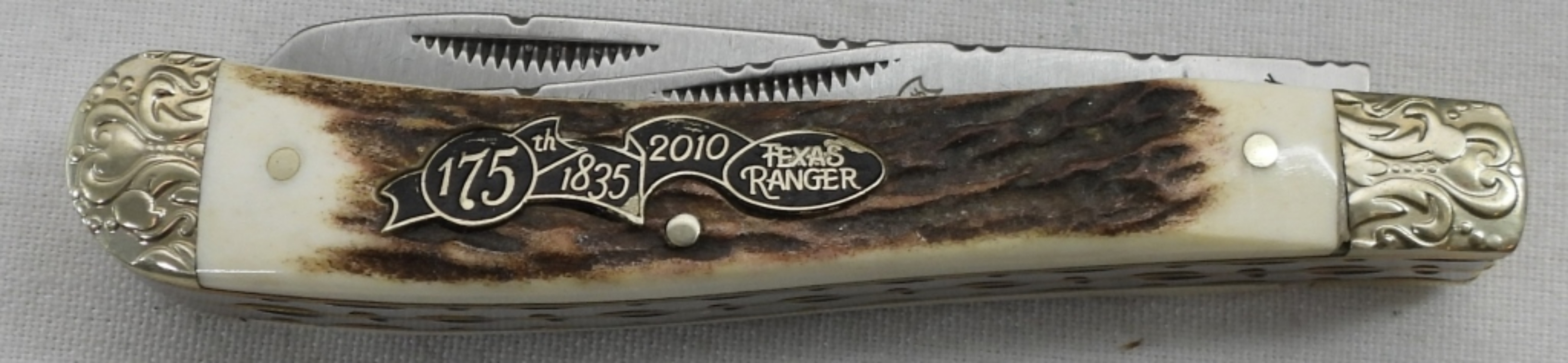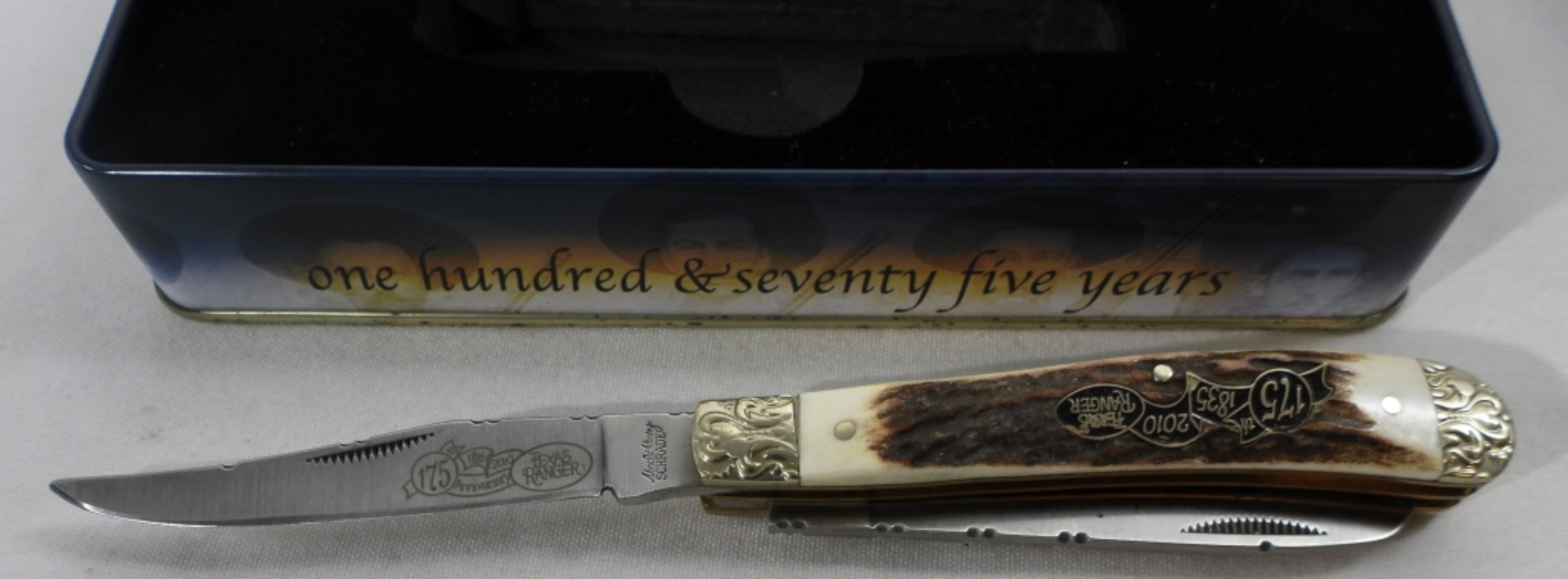 LIKE NEW IN TIN TEXAS RANGERS FOLDING KNIFE 175TH ANNIVERSARY 1835-2010 SCHRADE CUTLERY