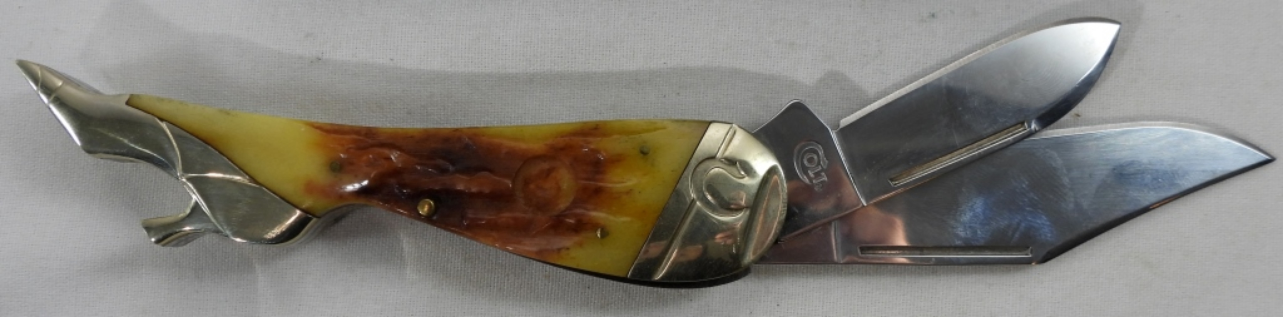 LIKE NEW IN BOX VINTAGE COLT LARGE 15″ BROWN BONE LARGE LEG KNIFE