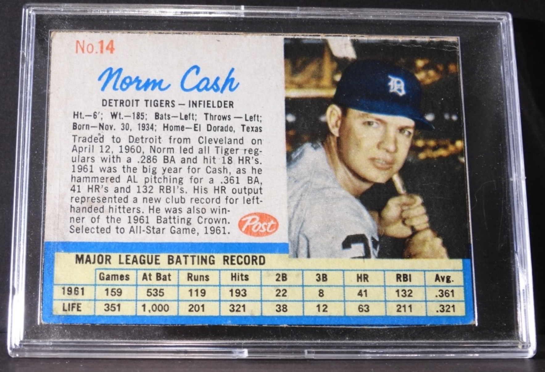 VG Hand cut in hard plastic sleeve, Detroit Tigers, Infielder