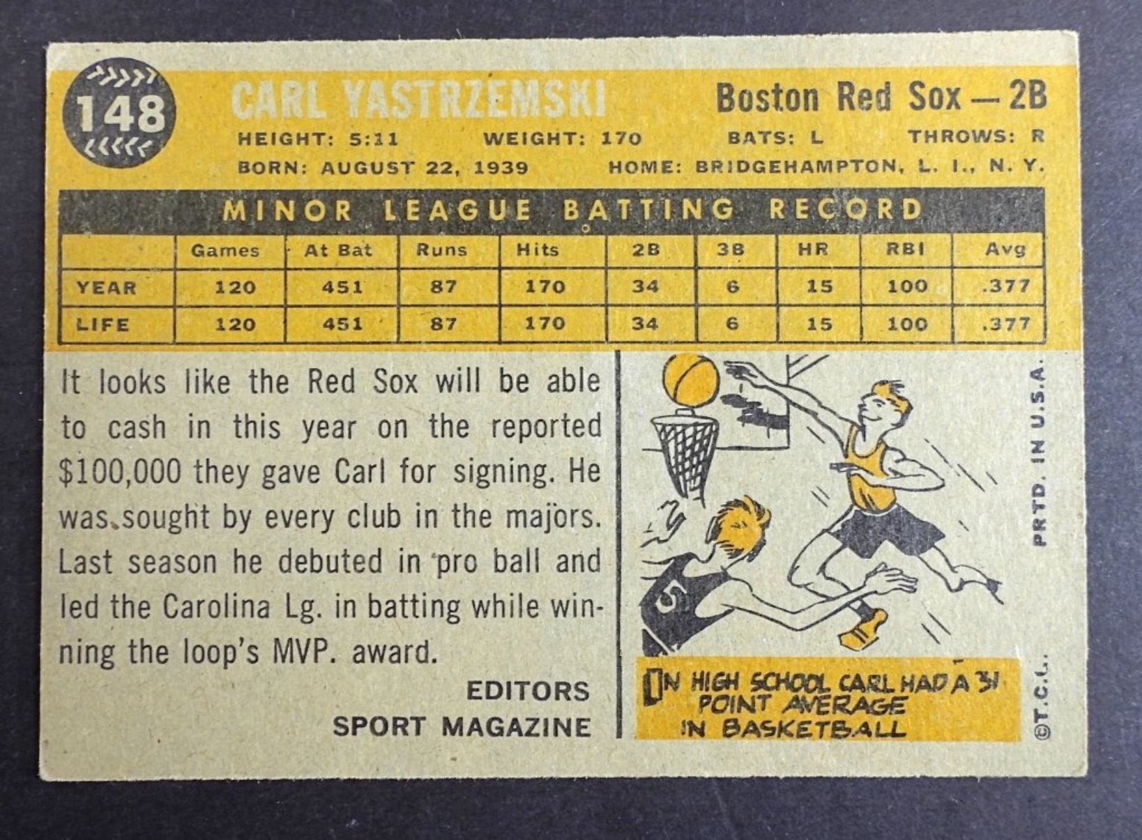 VG or better, 1960 TOPPS Rookie Star Carl Yastrzemski Boston Red Sox