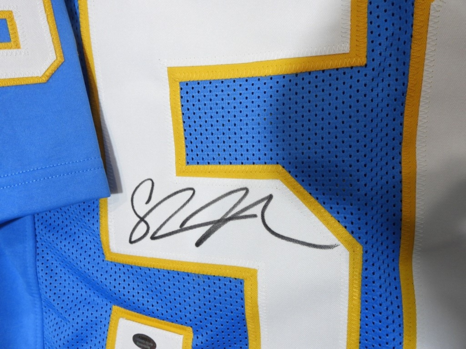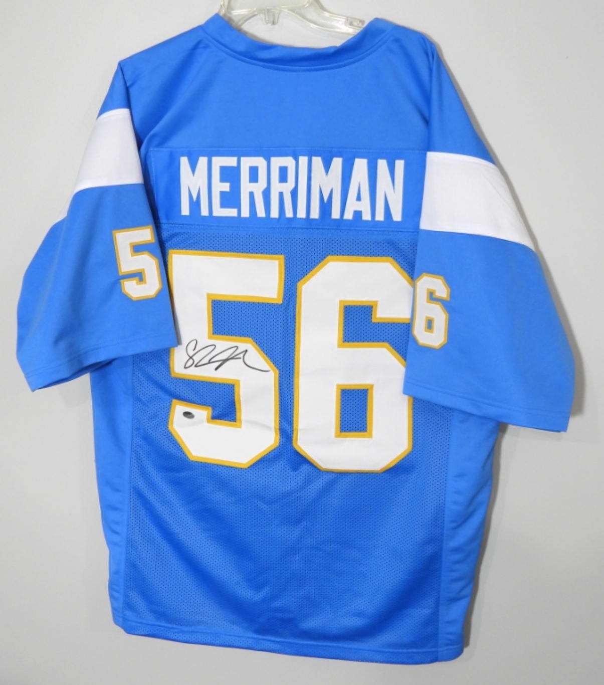 Men’s XL, signed on a powder blue custom football jersey, COA sticker from Schartz Sports Memorabilia #A368511 (Verified on the Schwartz Sports Memorabilia site)