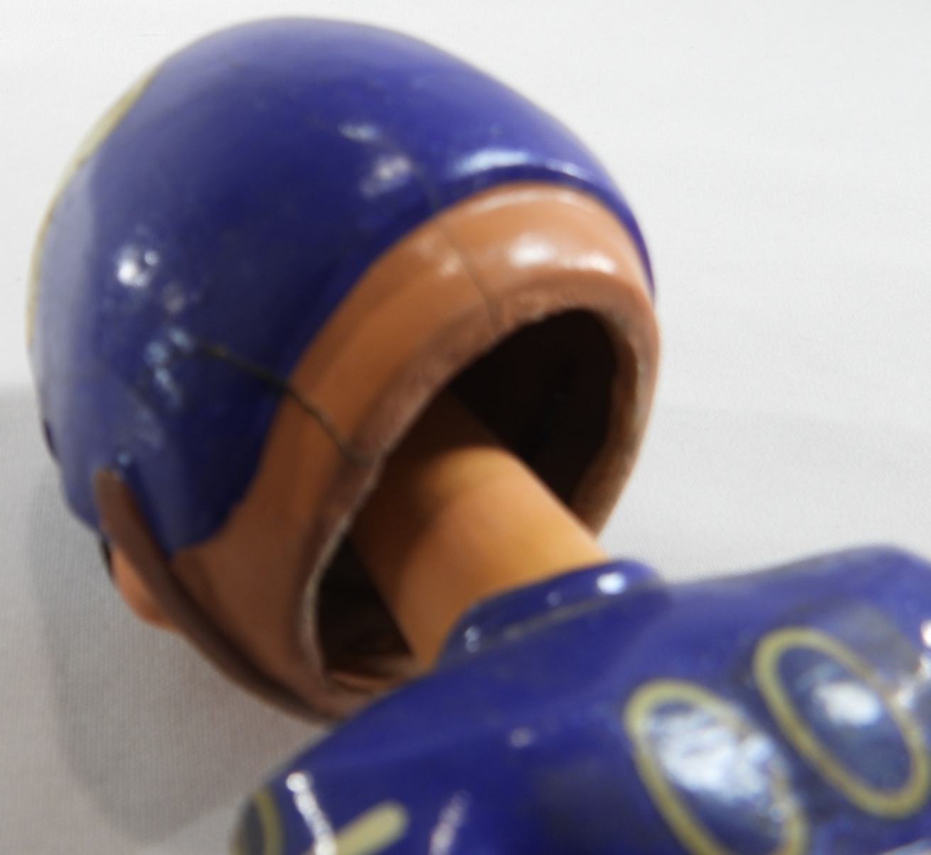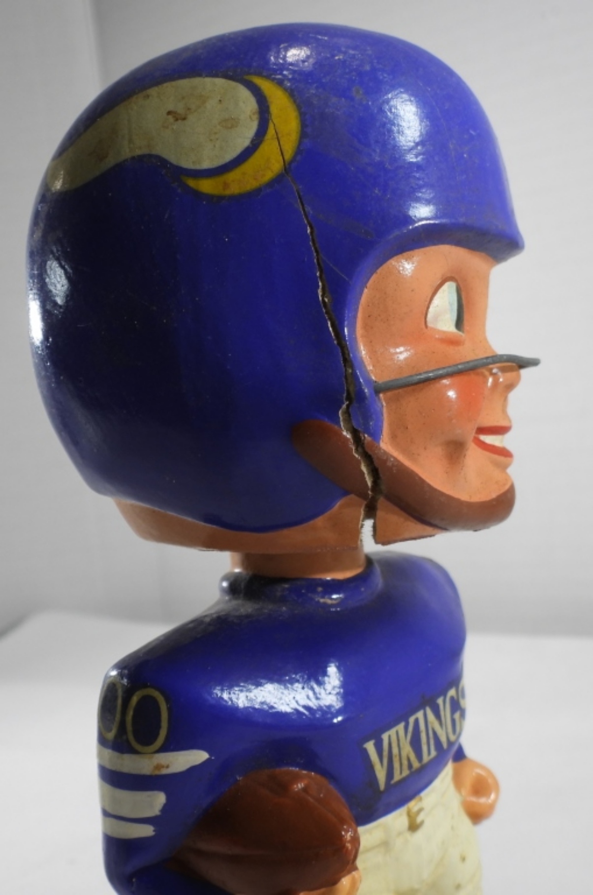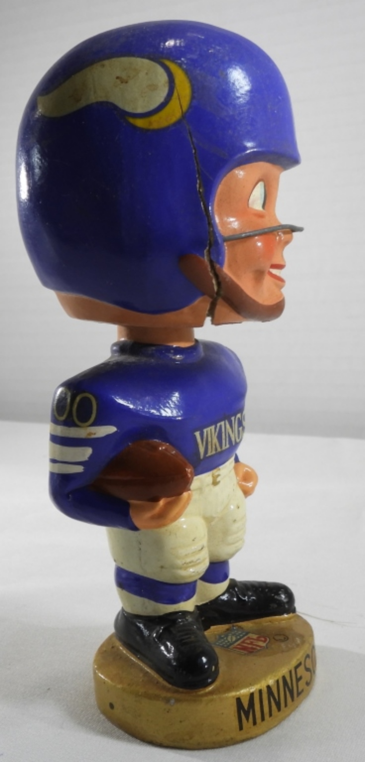 Has cracks around the head in different spots Along with normal wear from the years still bobbles nicely. Sticker at the bottom ” Exclusive Licensee Sports Specialties L.A. 67″ Made in Japan