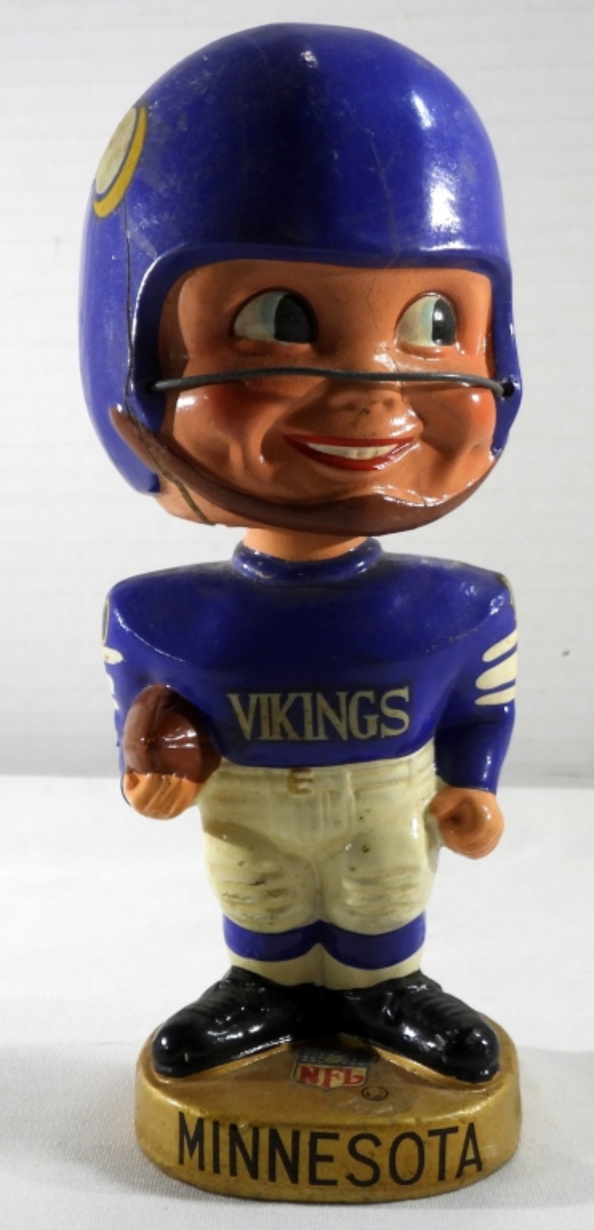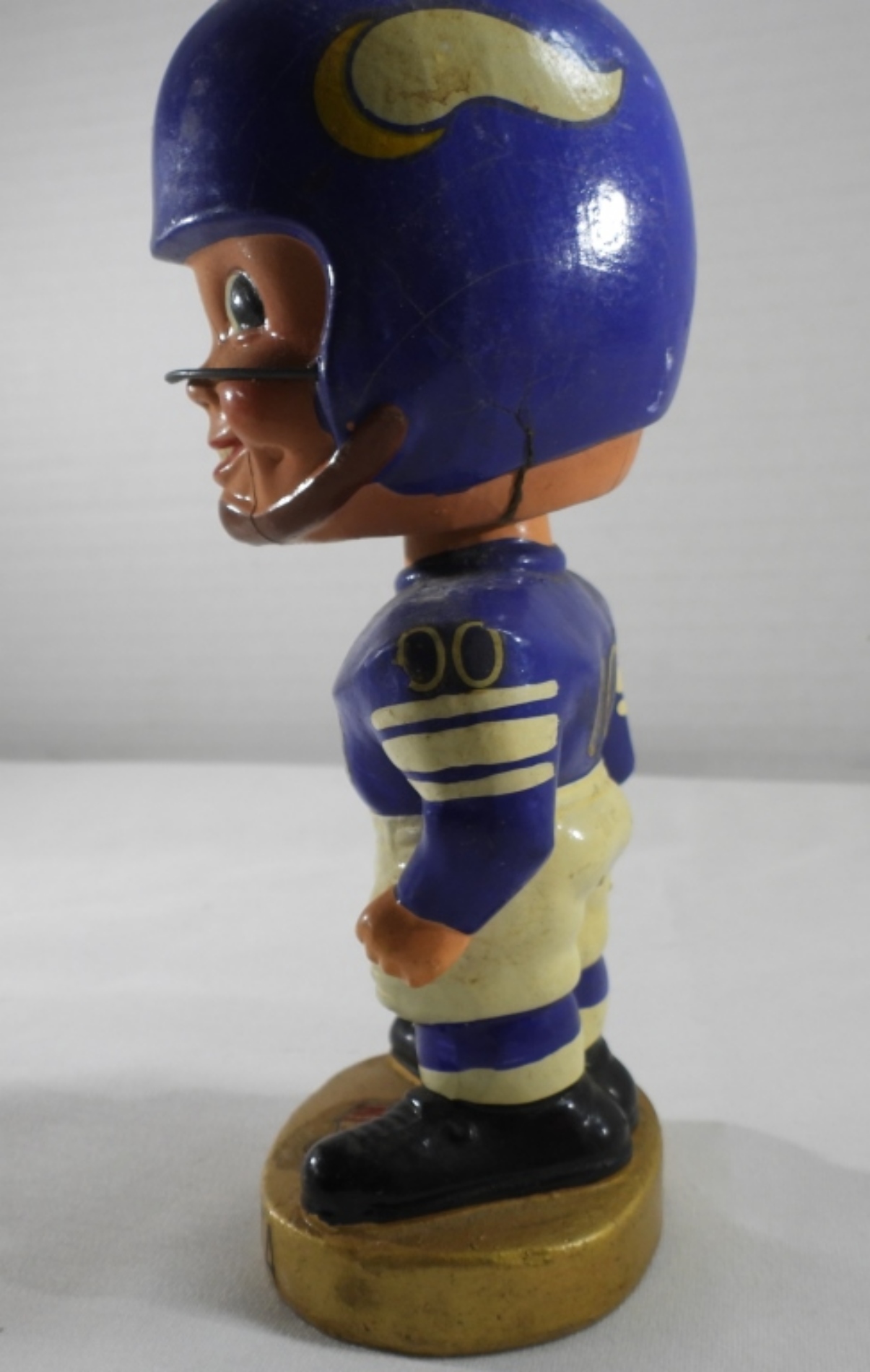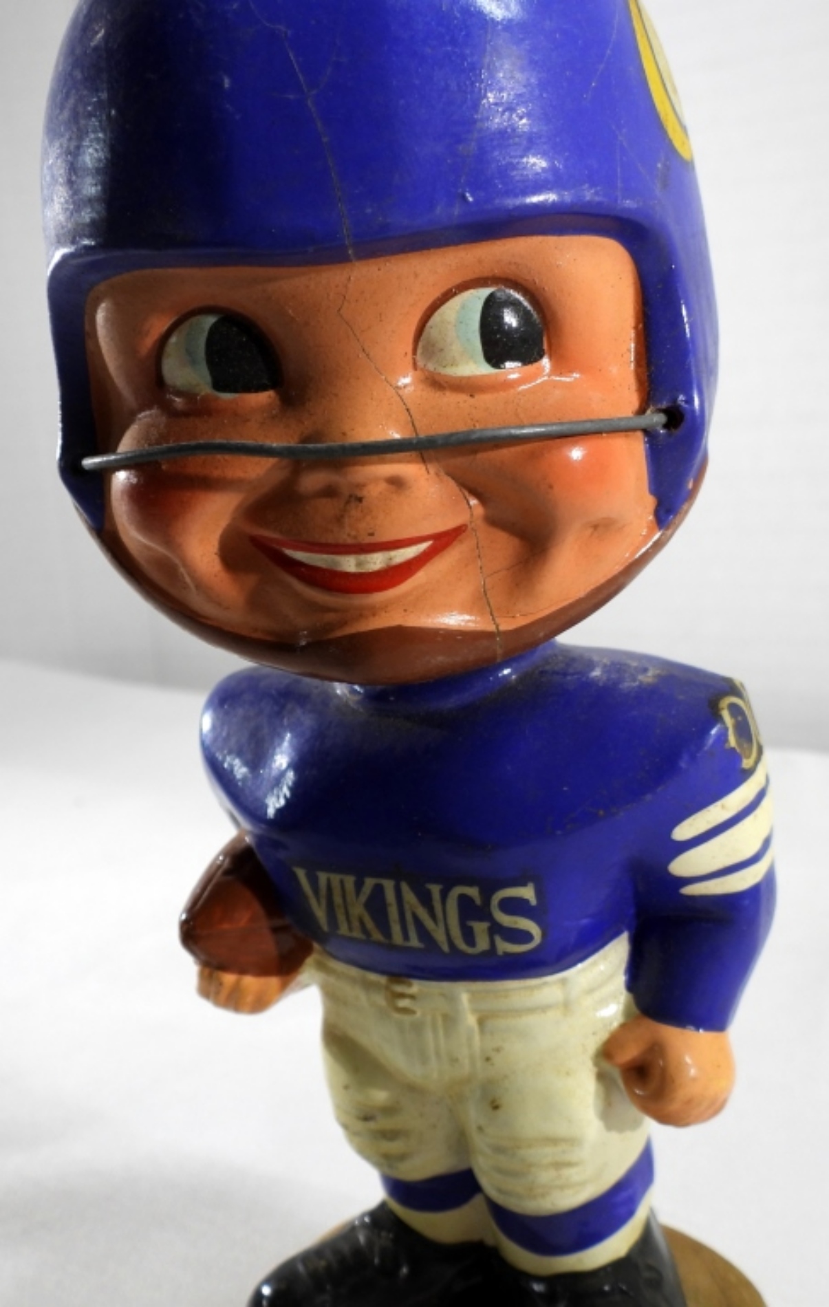 Has cracks around the head in different spots Along with normal wear from the years still bobbles nicely. Sticker at the bottom ” Exclusive Licensee Sports Specialties L.A. 67″ Made in Japan