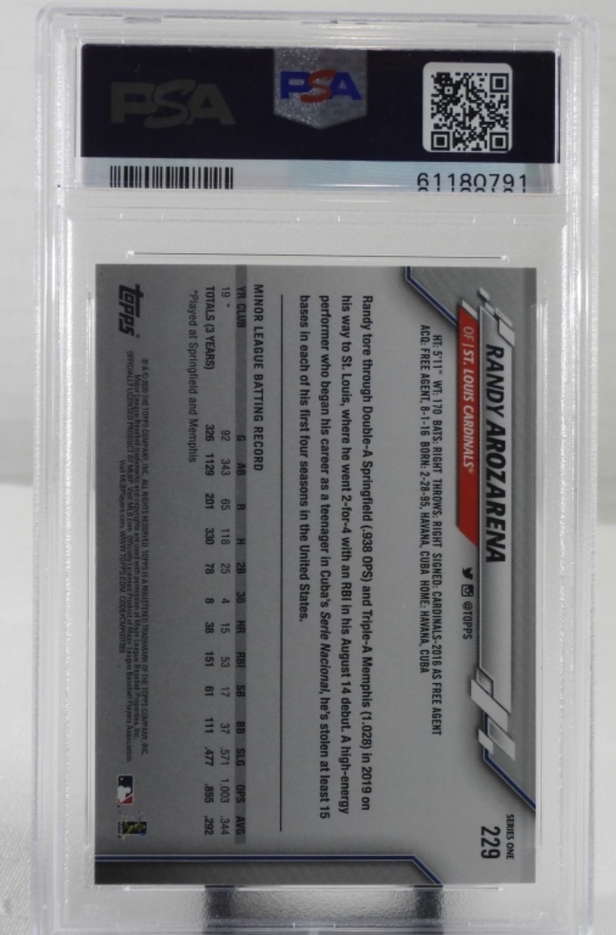 PSA, #229 GEM MT 10, 2023 TOPPS Randy Arozarena