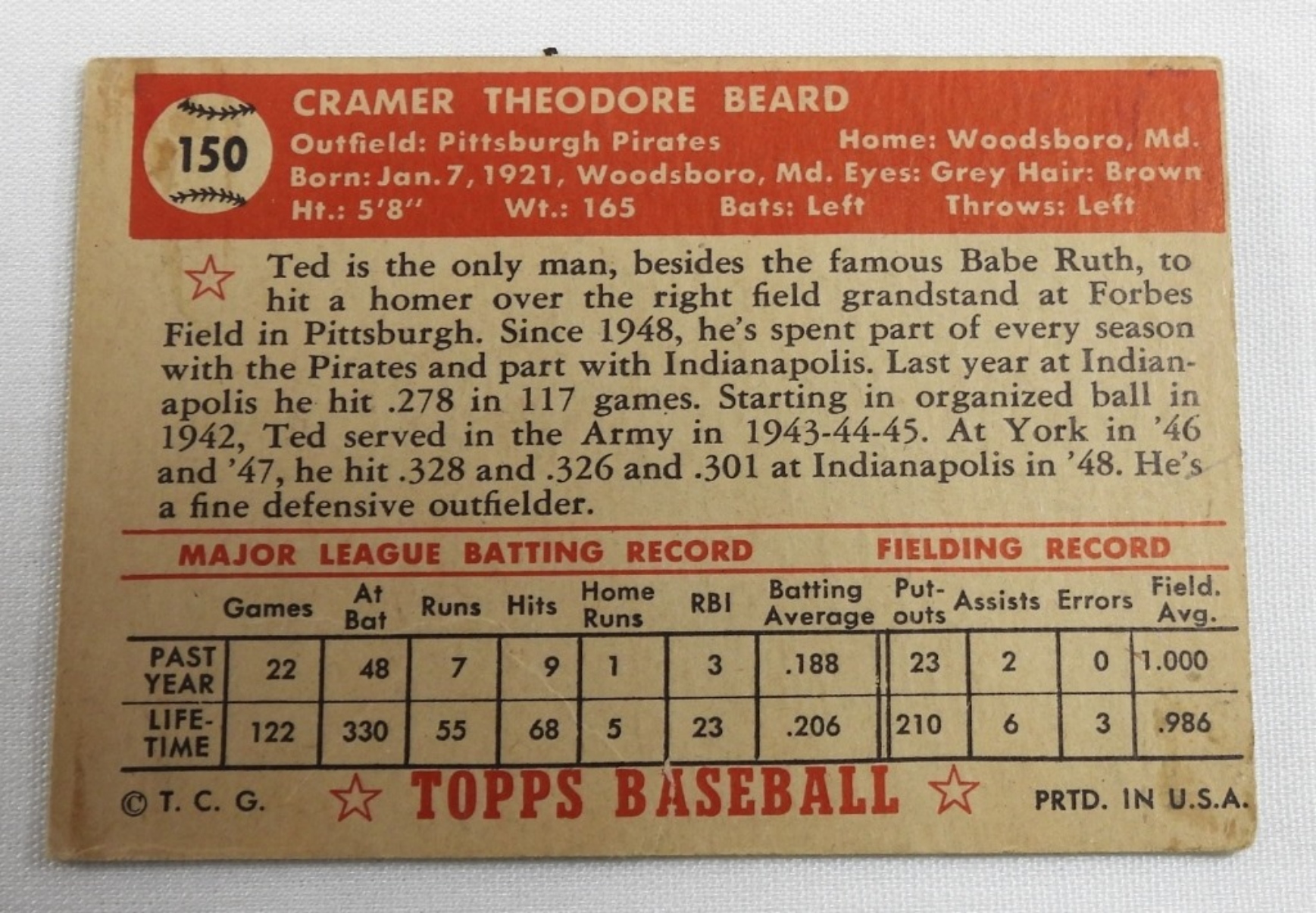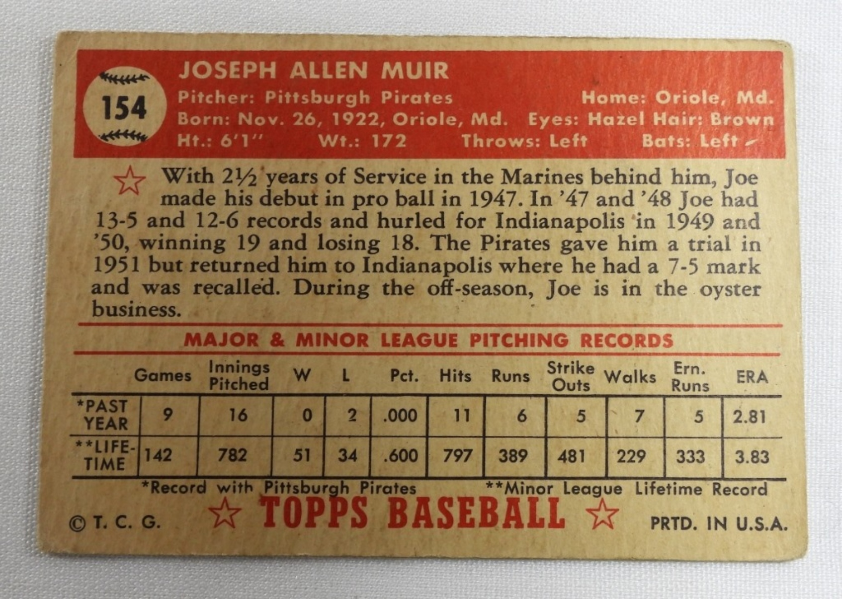1- Ted Beard #150, Does have some wear around the corners and sides, 1- Joe Muir # 154, Does have some wear around the corners and sides