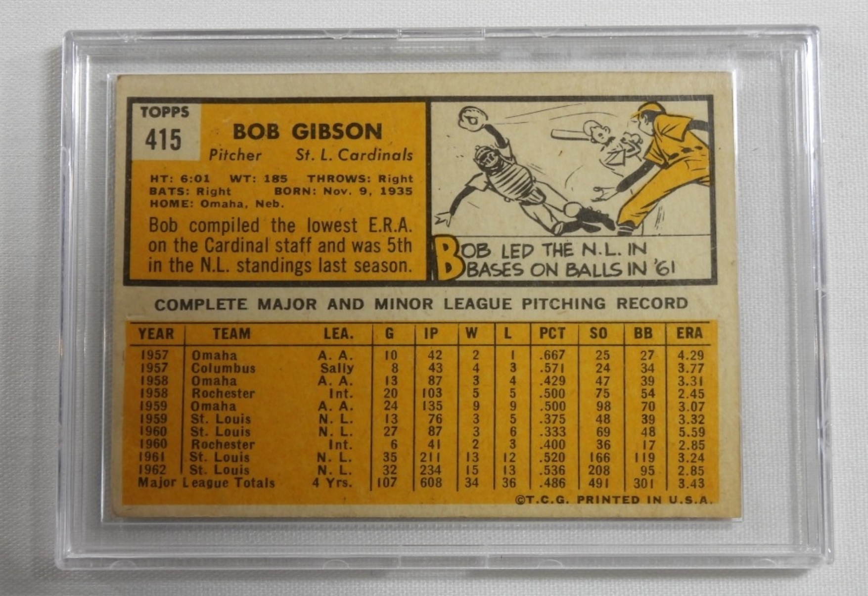Fair condition (has some water damage and creases), 1963 #415 Bob Gibson