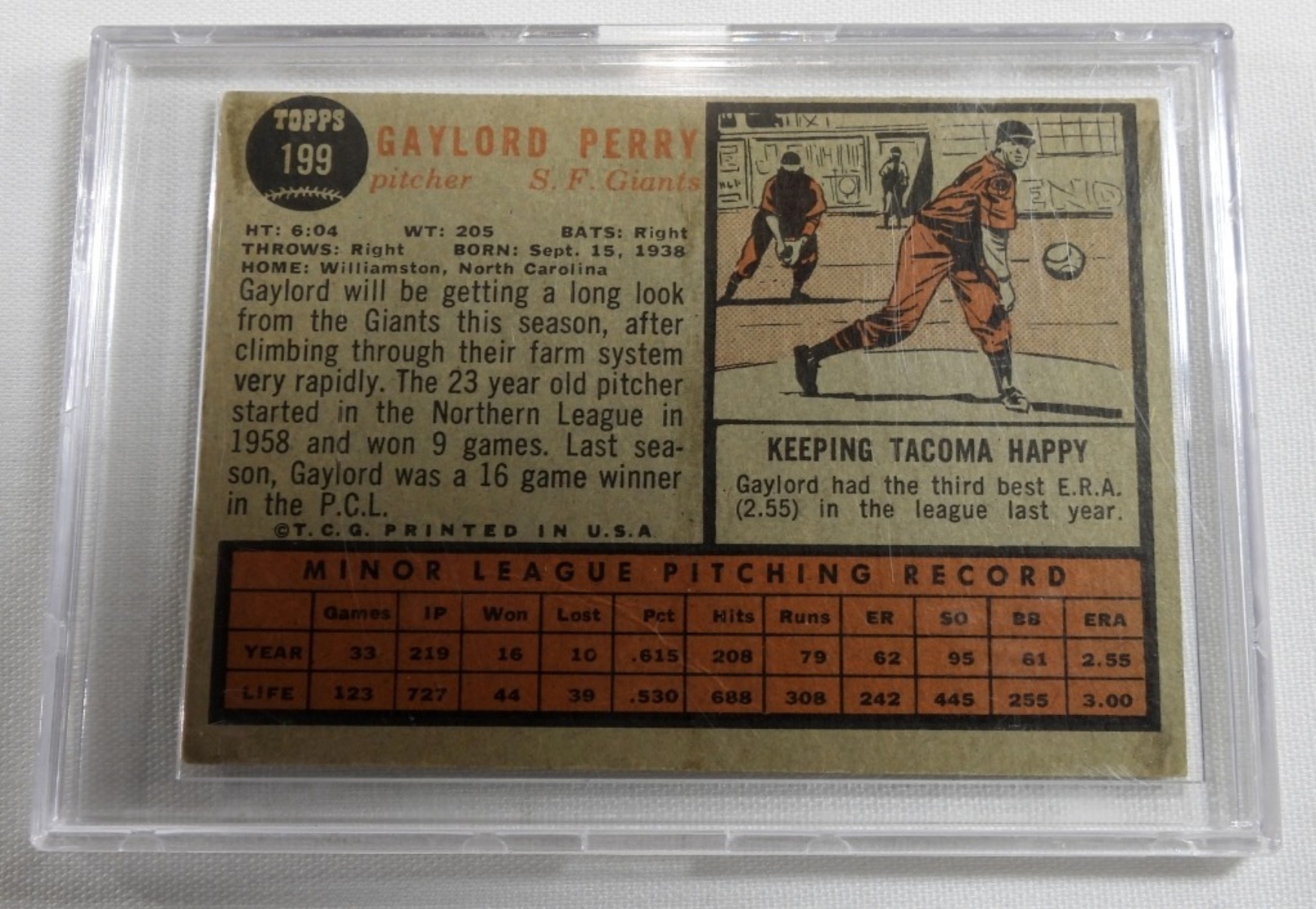 Fair/VG condition, creases and corners are worn, 1962 Rookie Topps, Gaylord Perry,