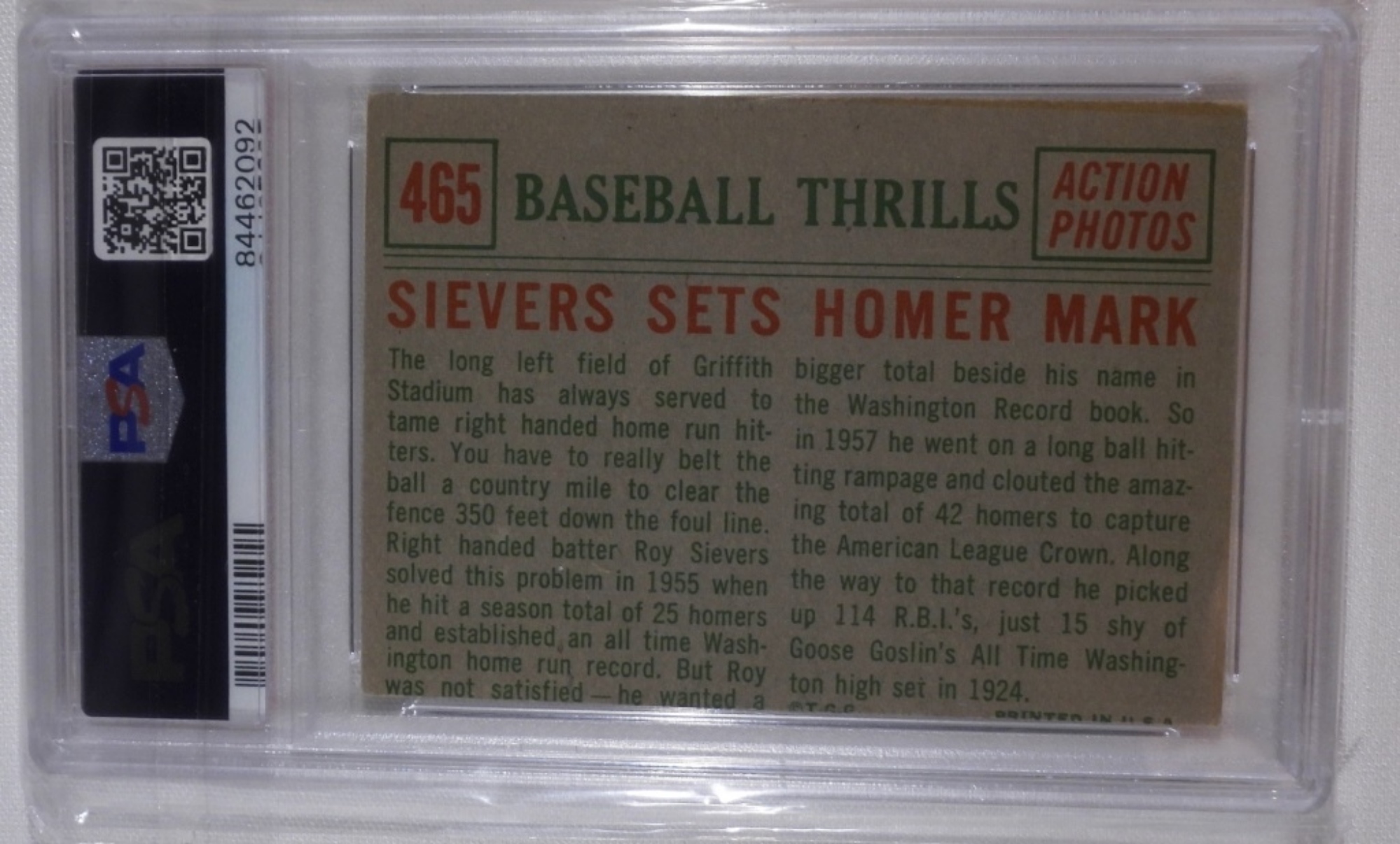 Roy Sievers PSA 1959 Topps Siever Sets Homer Mark #465 VG 3 84462092