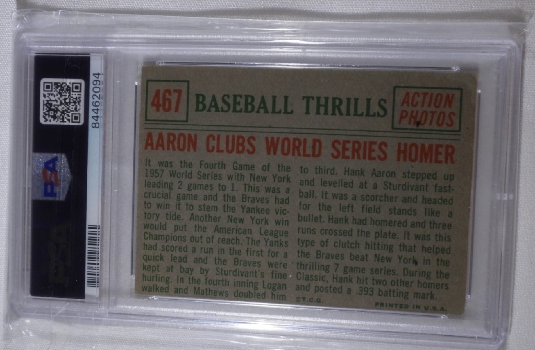 Hank Aaron,PSA 1959 Topps Aaron Clubs World Series Homer #467 EX 5 84462094