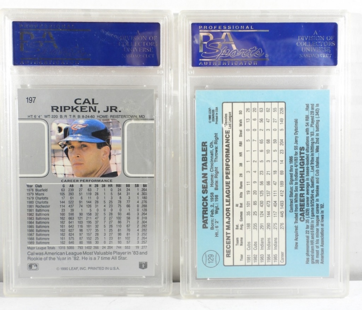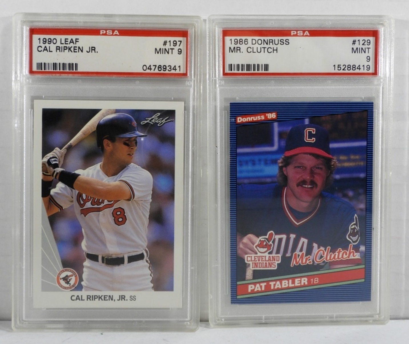 1- PSA Donruss Mr. Clutch #129 Mint 9 15288419, 1-PSA 1990 Leaf Cal Ripken Jr #197 Mint 9 04769341
