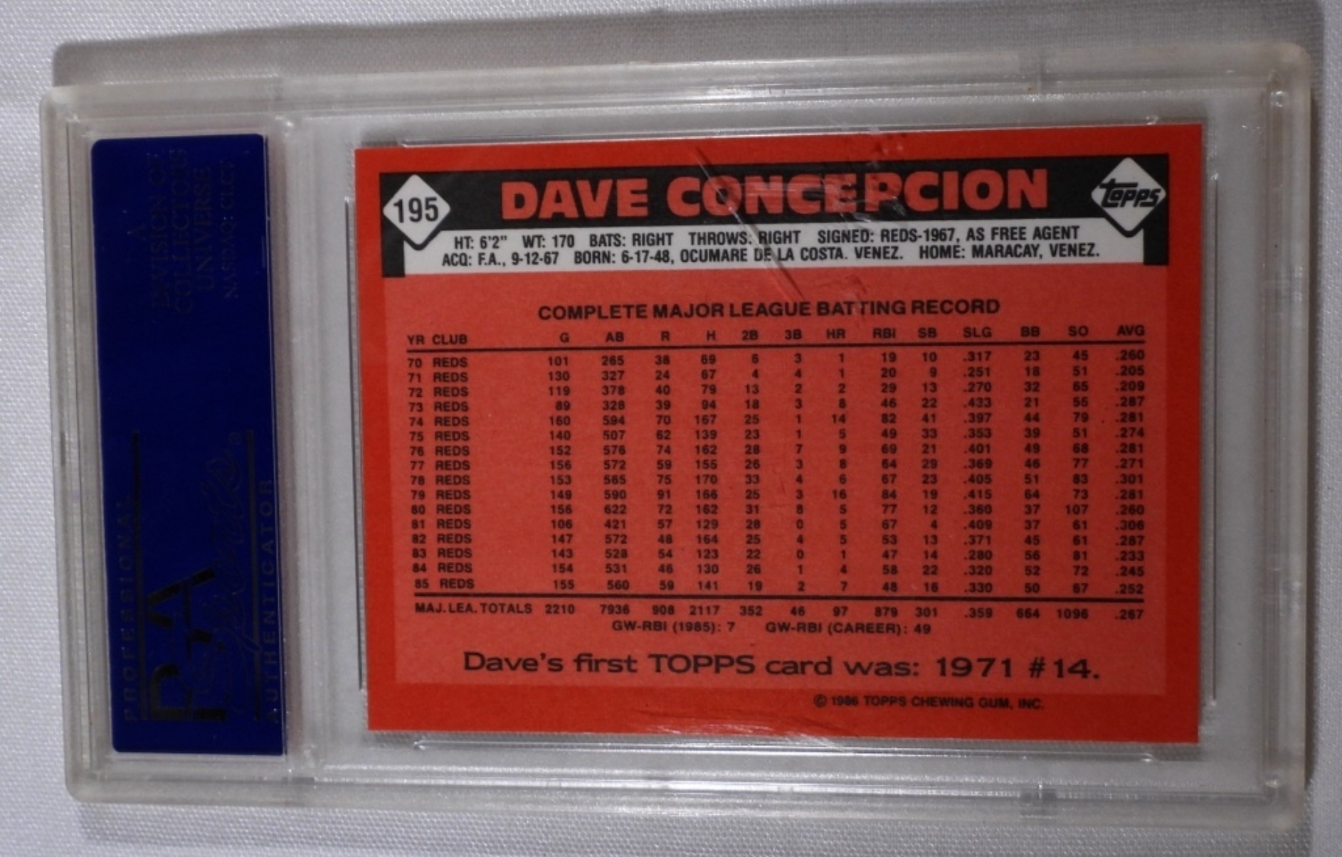 PSA 1986 Topps Tiffany Dave Concepcion #195 GEM MT 10 14913936
