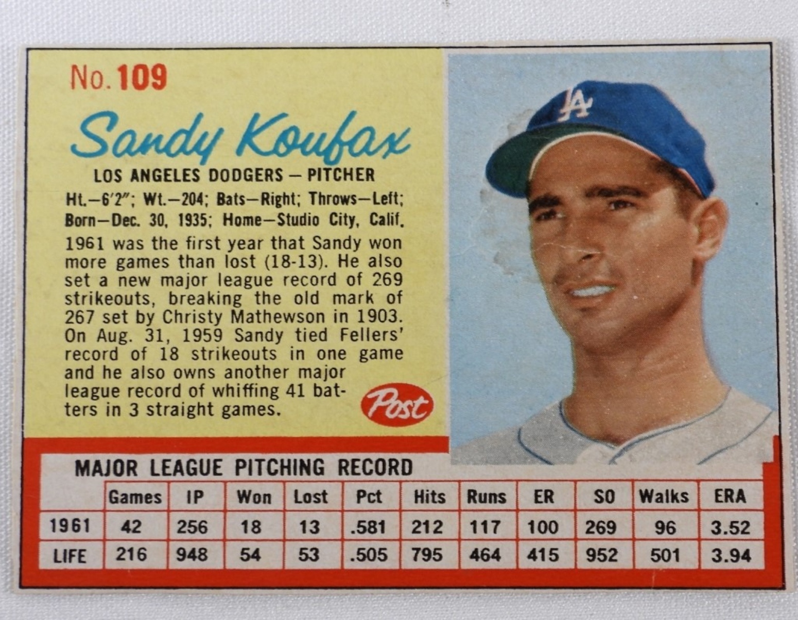 VG Hand cut in hard plastic sleeve, Los Angeles Dodgers, Sandy Koufax Pitcher