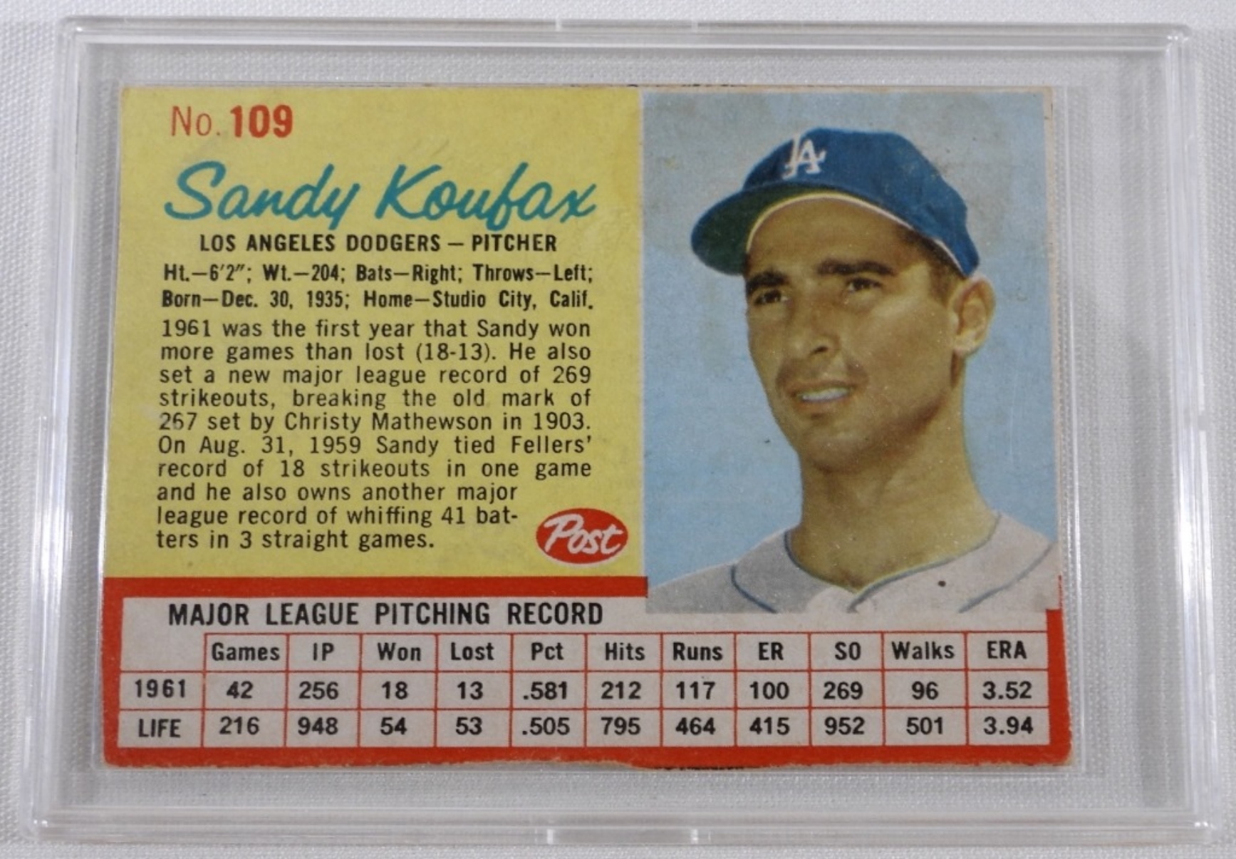 VG Hand cut in hard plastic sleeve, Los Angeles Dodgers Pitcher