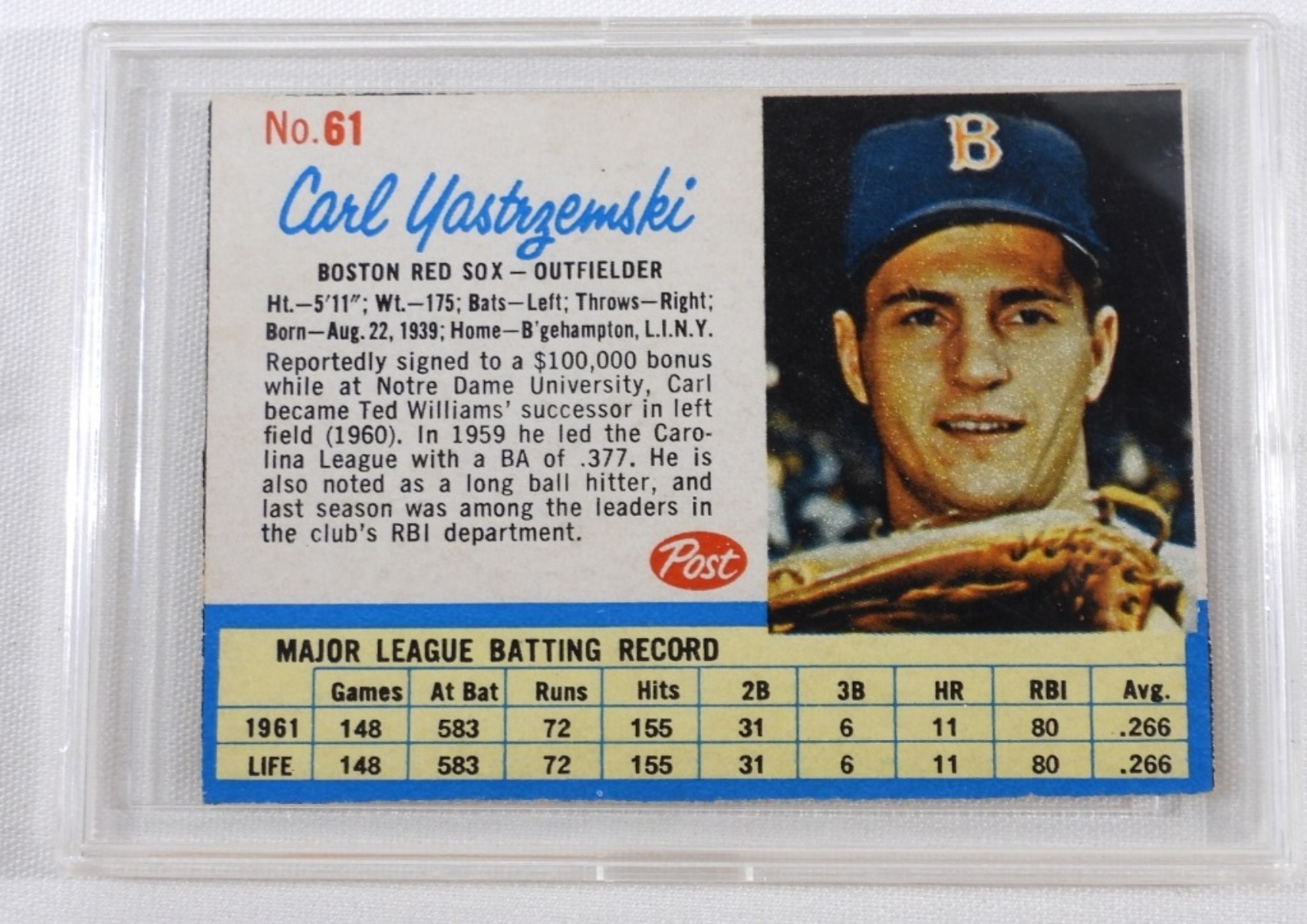 VG, Hand cut in hard plastic sleeve Carl Yastrzemski, Outfielder