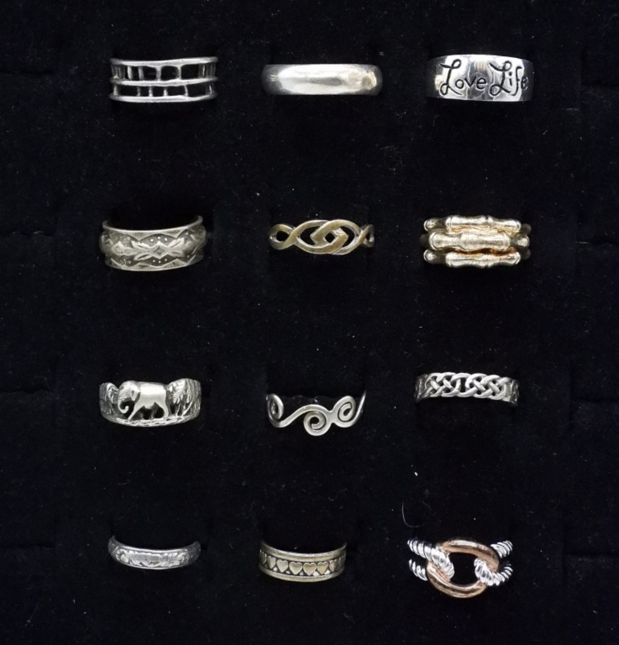 12 STERLING FASHION RINGS AND TOE RINGS. SIZES 3-9 (20.6 DWT)