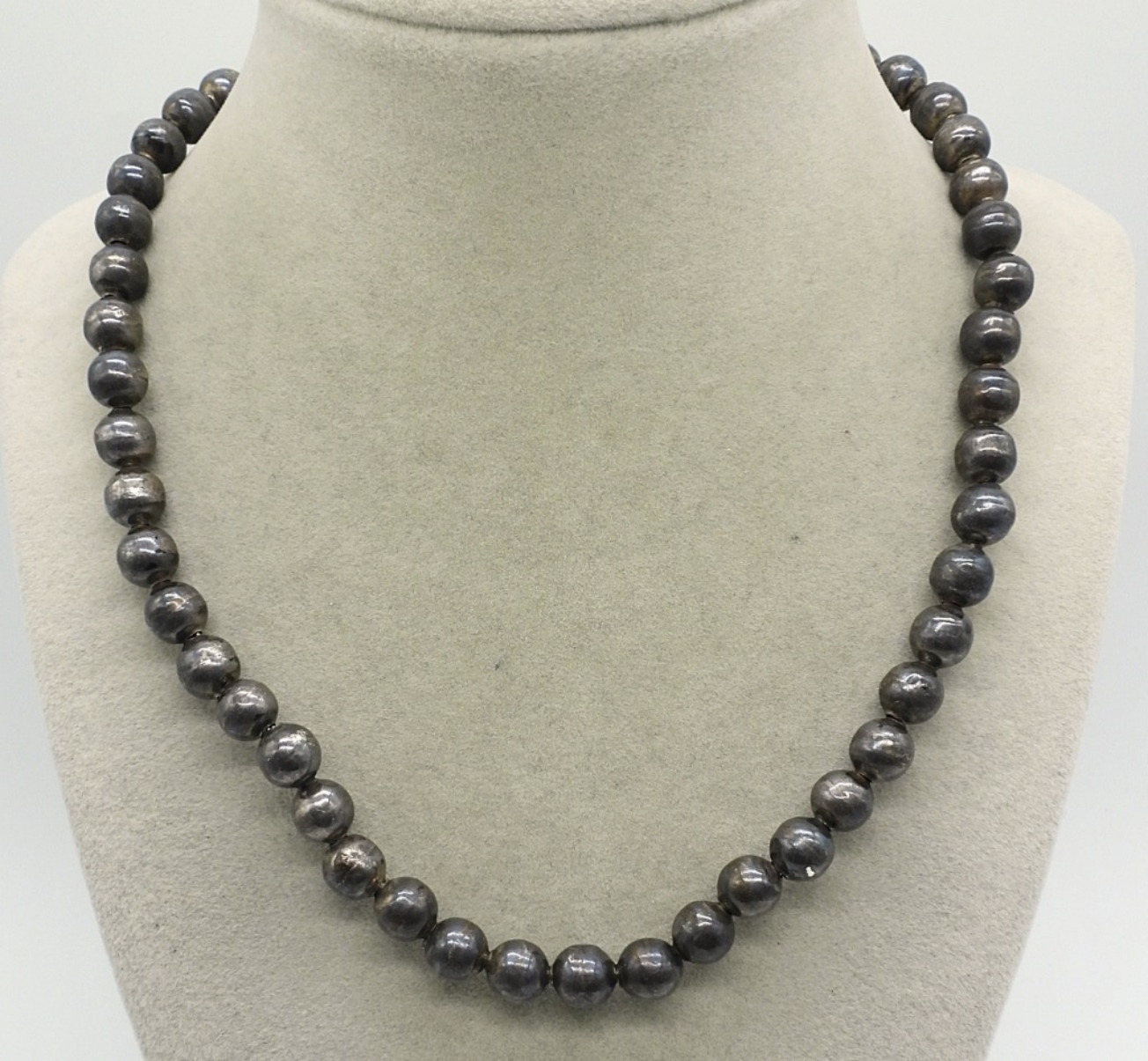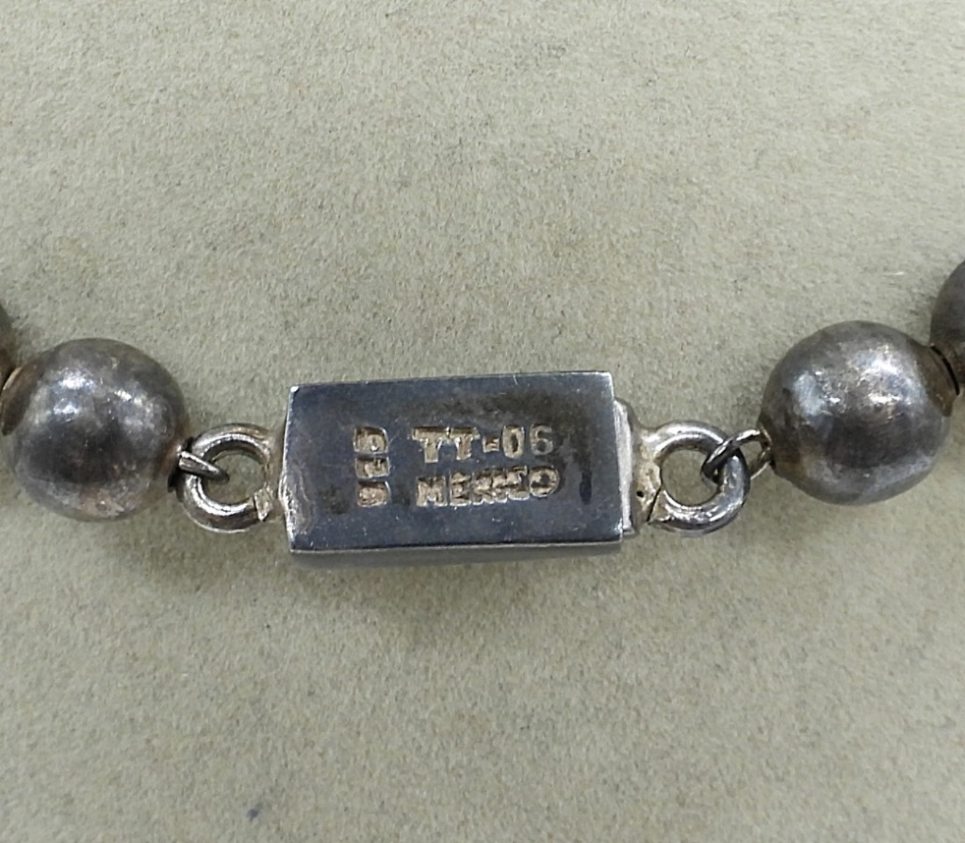 TAXCO MEXICO STERLING BEADED NECKLACE, 17.5″. “TT-06”. (19.4 DWT)