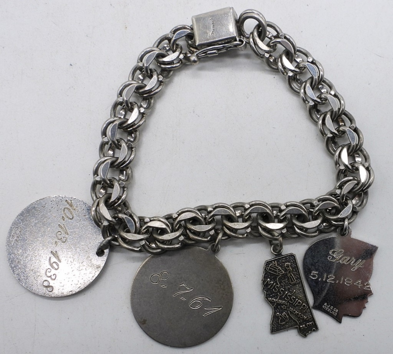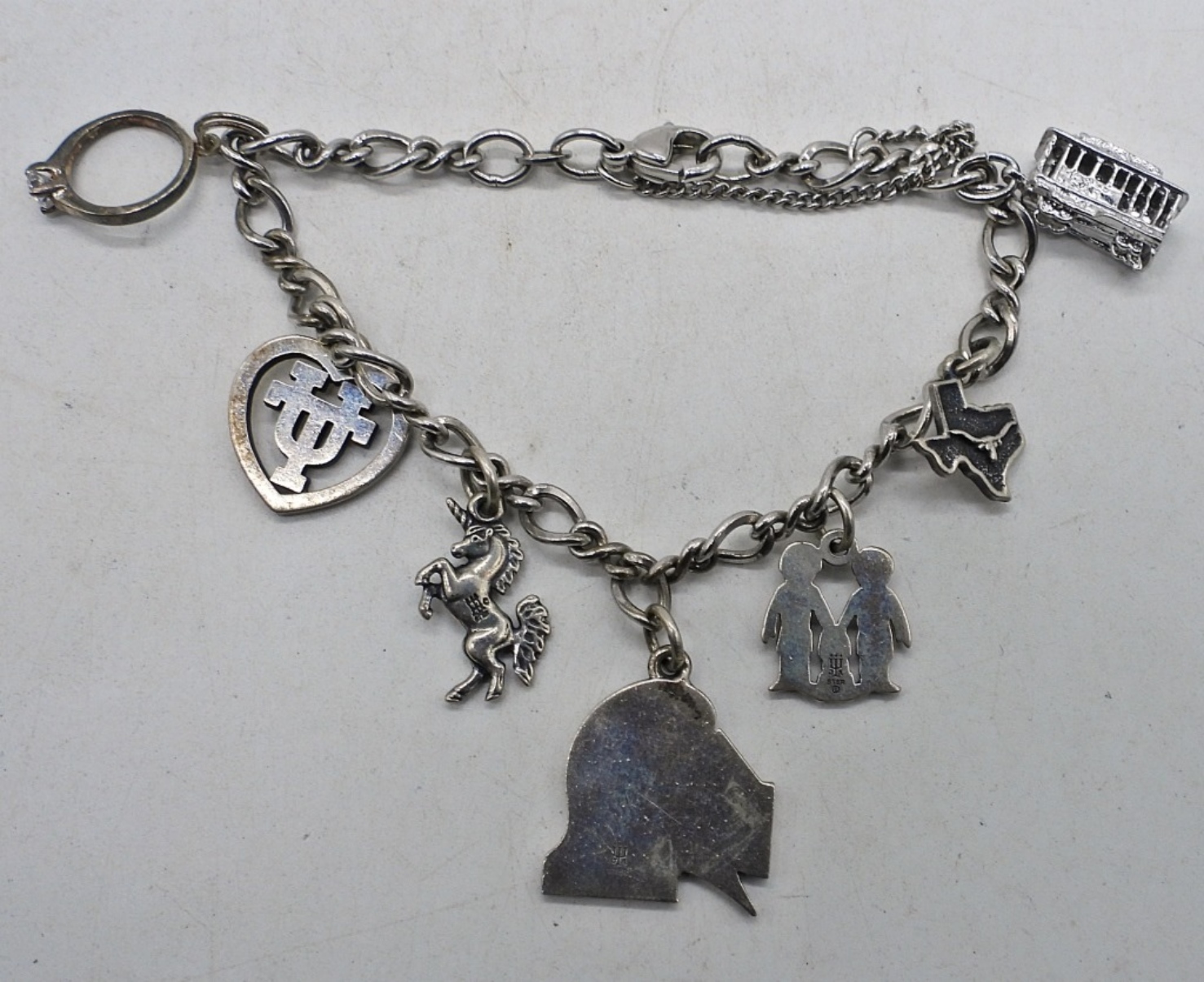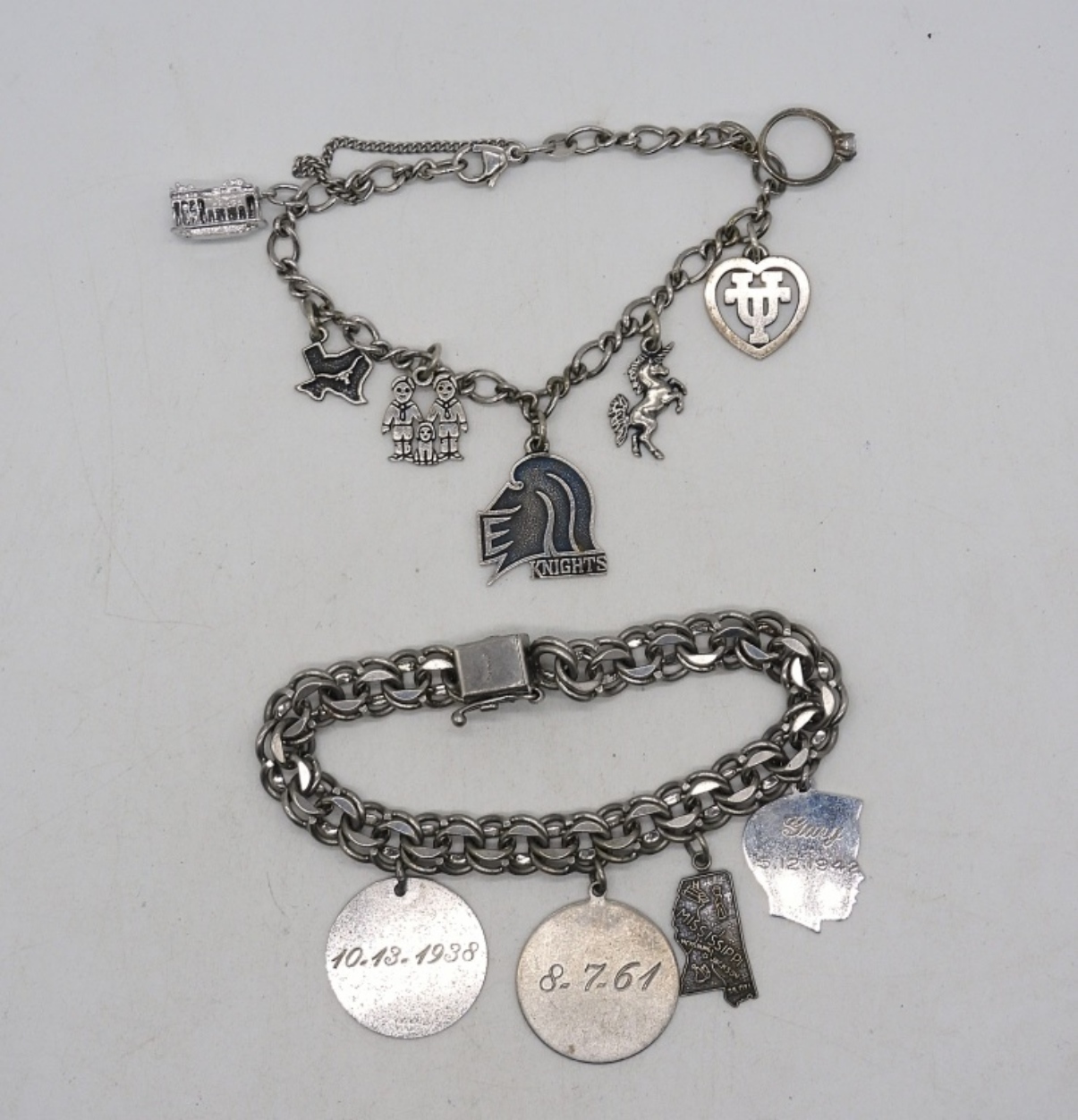 TWO STERLING CHARM BRACELETS. 7″. (11 CHARMS). (35 DWT)