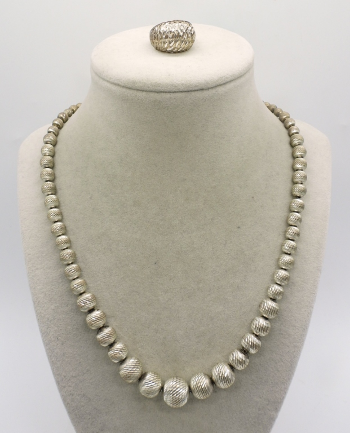 VINTAGE STERLING NECKLACE, 18″ AND RING SIZE 7 (21.8 DWT)